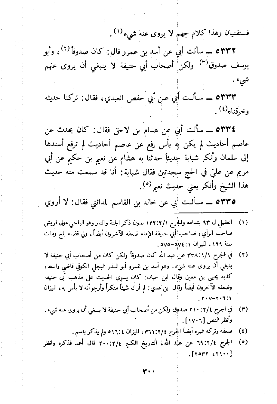 5332 - سَأَلت أبي عَن أَسد بن عَمْرو قَالَ كَانَ صَدُوقًا وَأَبُو يُوسُف صَدُوق وَلَكِن أَصْحَاب أبي حنيفَة لَا يَنْبَغِي أَن يرْوى عَنْهُم شَيْء