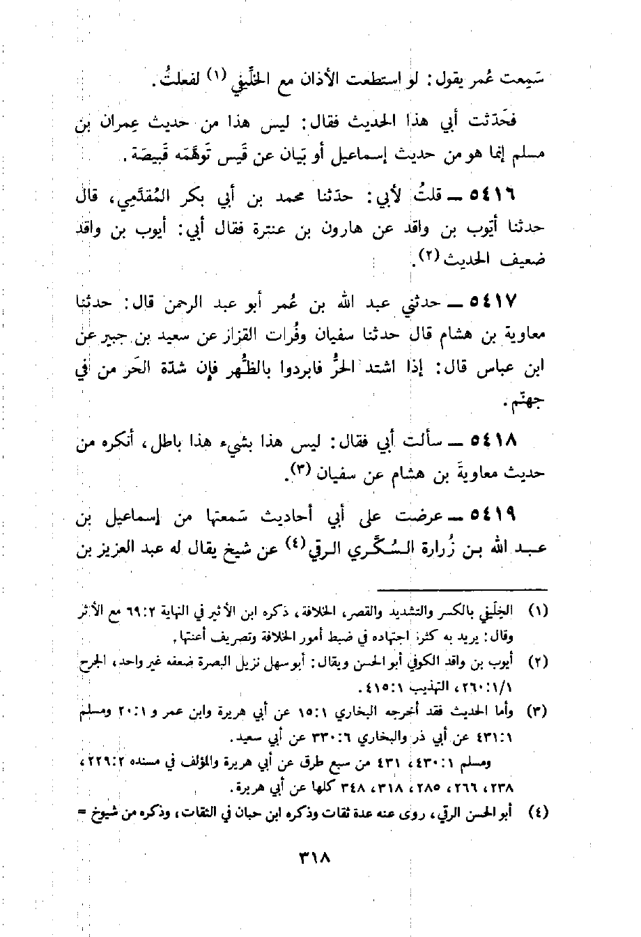 5418 - سَأَلْتُ أَبِي فَقَالَ لَيْسَ هَذَا بِشَيْءٍ هَذَا بَاطِلٌ أَنْكَرَهُ مِنْ حَدِيثِ مُعَاوِيَةَ بْنِ هِشَامٍ عَنْ سُفْيَانَ