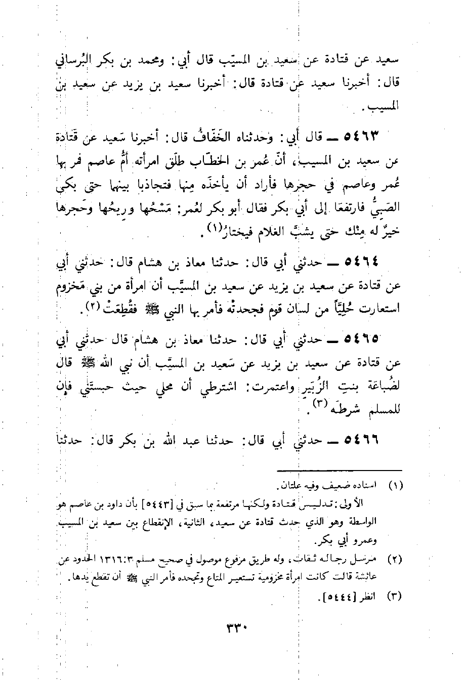 5464 - حَدَّثَنِي أبي قَالَ حَدثنَا معَاذ بن هِشَامٍ قَالَ حَدَّثَنِي أَبِي عَنْ قَتَادَةَ عَنْ سَعِيدِ بْنِ يَزِيدَ عَن سيعد بْنِ الْمُسَيِّبِ أَنَّ امْرَأَةً مِنْ بَنِي مَخْزُومٍ اسْتَعَارَتْ حُلَيًّا مِنْ لِسَان قوم فجحدته فَأَمَرَ بِهَا النَّبِيُّ صَلَّى اللَّهُ عَلَيْهِ وَسَلَّمَ فَقُطِعَتْ