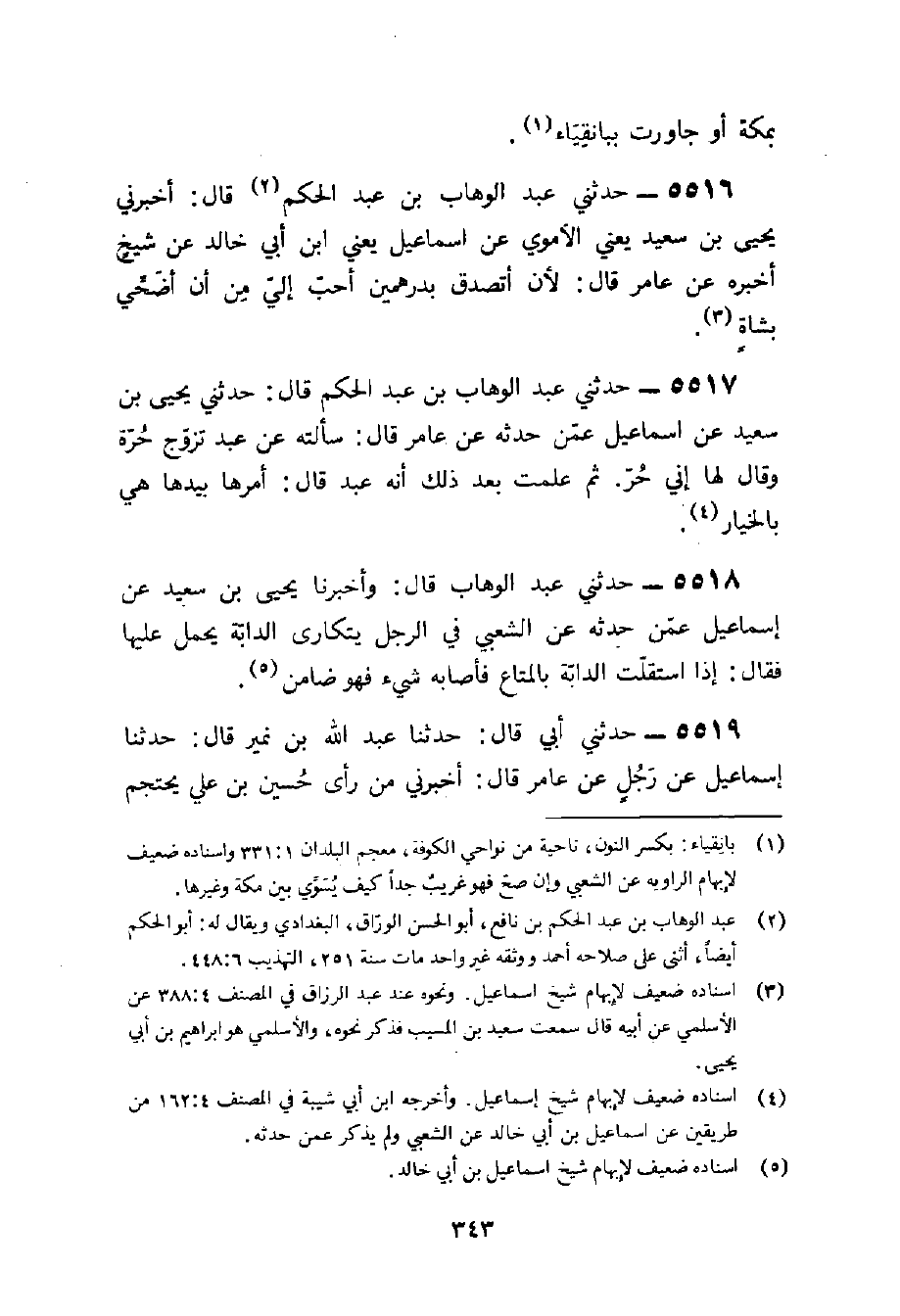 5516 - حَدثنِي عبد الْوَهَّاب بن عبد الحكم قَالَ أَخْبرنِي يحيى بن سعيد يَعْنِي الْأمَوِي عَن إِسْمَاعِيل يَعْنِي بن أبي خَالِد عَن شيخ أخبرهُ عَن عَامر قَالَ لِأَن أَتصدق بِدِرْهَمَيْنِ أحب إِلَيّ من أَن أضحي بِشَاة