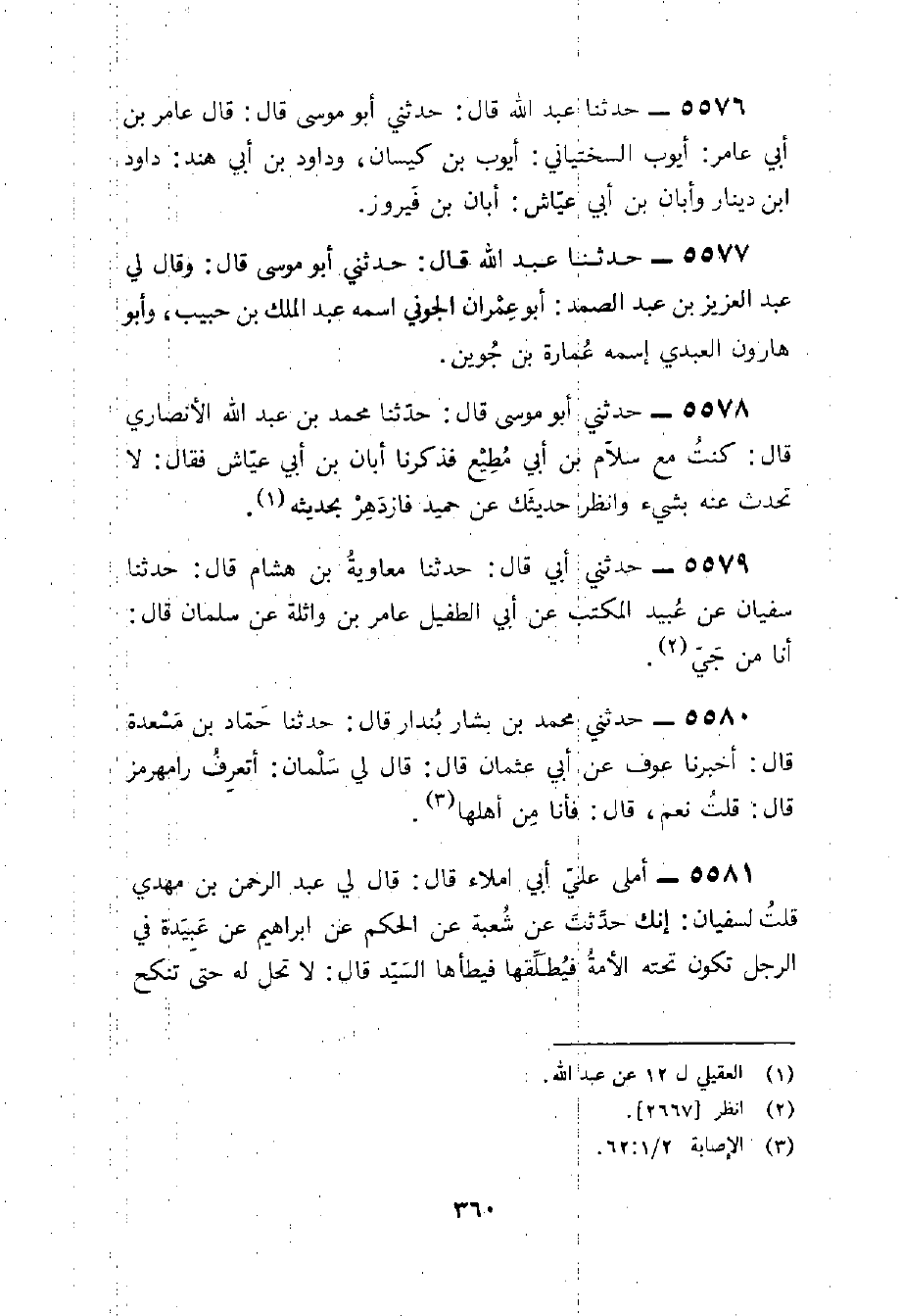 5576 - حَدَّثَنَا عَبْدُ اللَّهِ قَالَ حَدَّثَنِي أَبُو مُوسَى قَالَ قَالَ عَامر بن أبي عَامر أَيُّوب السّخْتِيَانِيّ أَيُّوب بن كيسَان وَدَاوُد بن أبي هِنْد دَاوُد بن دِينَار وَأَبَان بن أبي عَيَّاش أبان بن فَيْرُوز