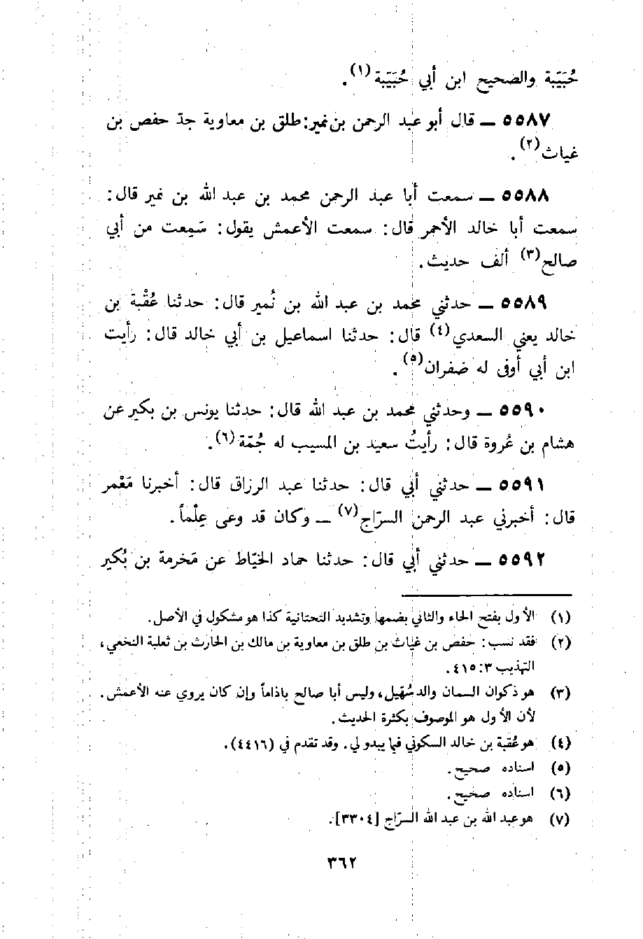 5588 - سَمِعت أَبَا عبد الرَّحْمَن مُحَمَّد بن عبد الله بن نمير قَالَ سَمِعت أَبَا خَالِد الْأَحْمَر قَالَ سَمِعت الْأَعْمَش يَقُول سَمِعت من أبي صَالح ألف حَدِيث