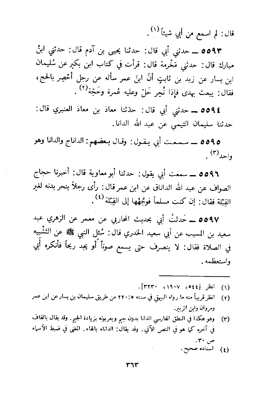 5594 - حَدثنِي أبي قَالَ حَدثنَا معَاذ بن معَاذ الْعَنْبَري قَالَ حَدثنَا سُلَيْمَان التَّيْمِيّ عَن عبد الله الدانا