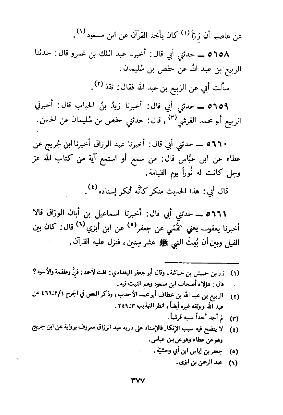 5659 - حَدثنِي أبي قَالَ أخبرنَا زيد بن الْحباب قَالَ أَخْبرنِي الرّبيع أَبُو مُحَمَّد الْقرشِي قَالَ حَدثنِي حَفْص بن سُلَيْمَان عَن الْحسن