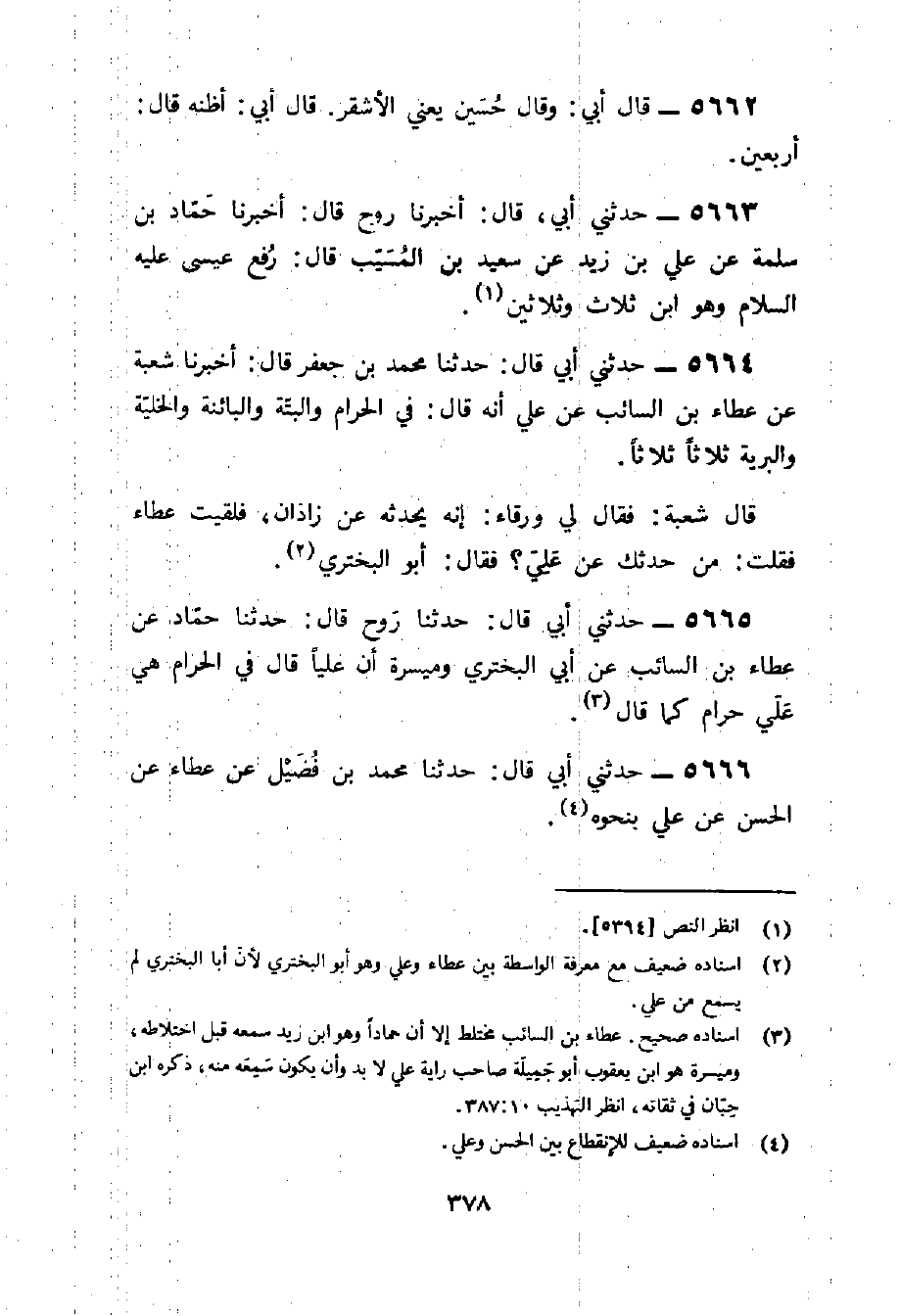 5666 - حَدثنِي أبي قَالَ حَدثنَا مُحَمَّد بن فُضَيْل عَن عَطاء عَن الْحسن عَن عَليّ بِنَحْوِهِ