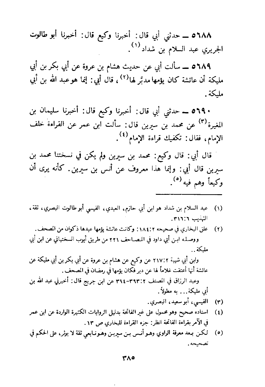 5688 - حَدثنِي أبي قَالَ أخبرنَا وَكِيع قَالَ أخبرنَا أَبُو طالوت الْجريرِي عبد السَّلَام بن شَدَّاد