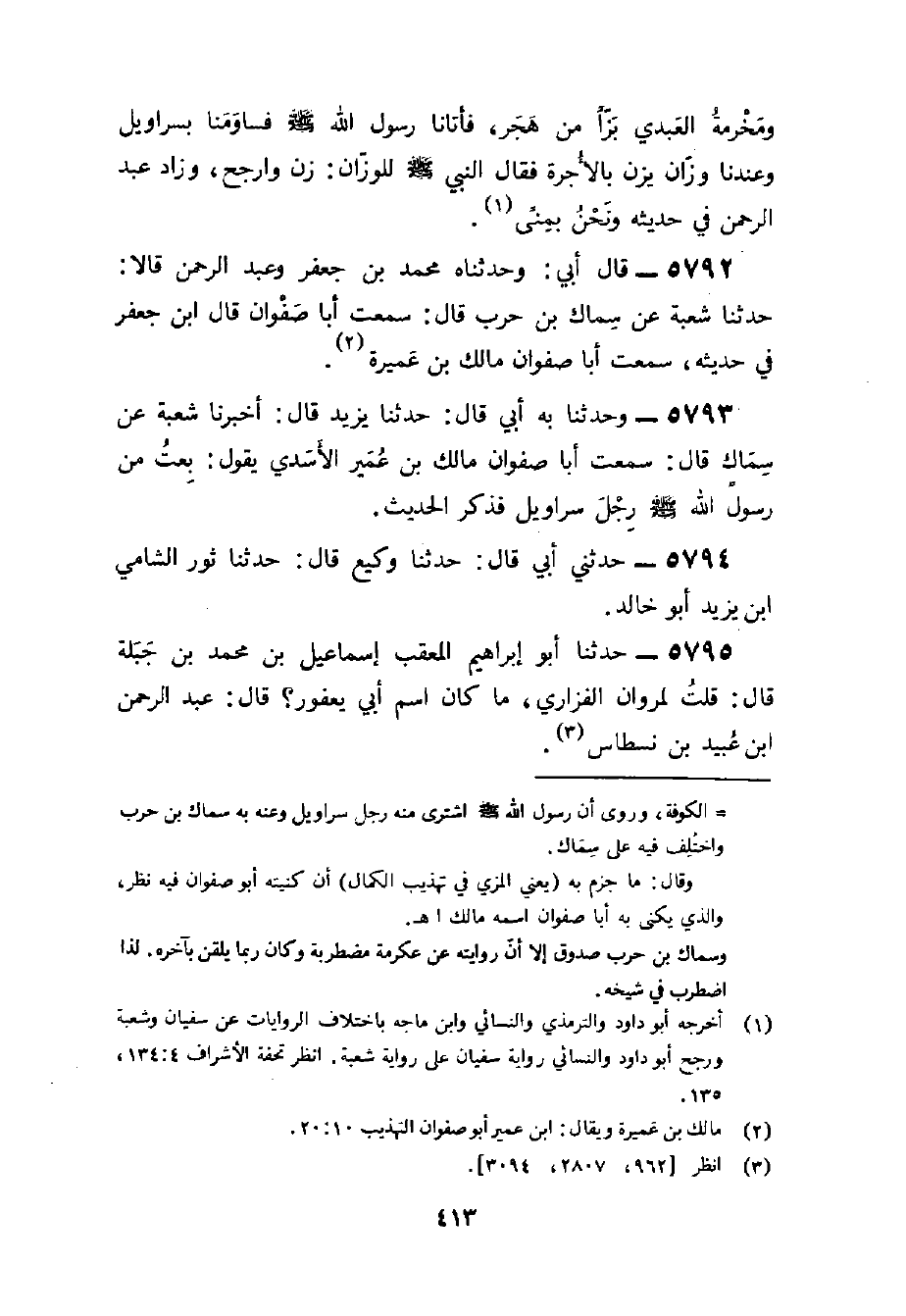 5793 - وَحدثنَا بِهِ أبي قَالَ حَدثنَا يزِيد قَالَ أخبرنَا شُعْبَة عَن سماك قَالَ سَمِعت أَبَا صَفْوَان مَالك بن عُمَيْر الْأَسدي يَقُول بِعْت مِنْ رَسُولِ اللَّهِ صَلَّى اللَّهُ عَلَيْهِ وَسلم رجل سَرَاوِيل فَذكر الحَدِيث