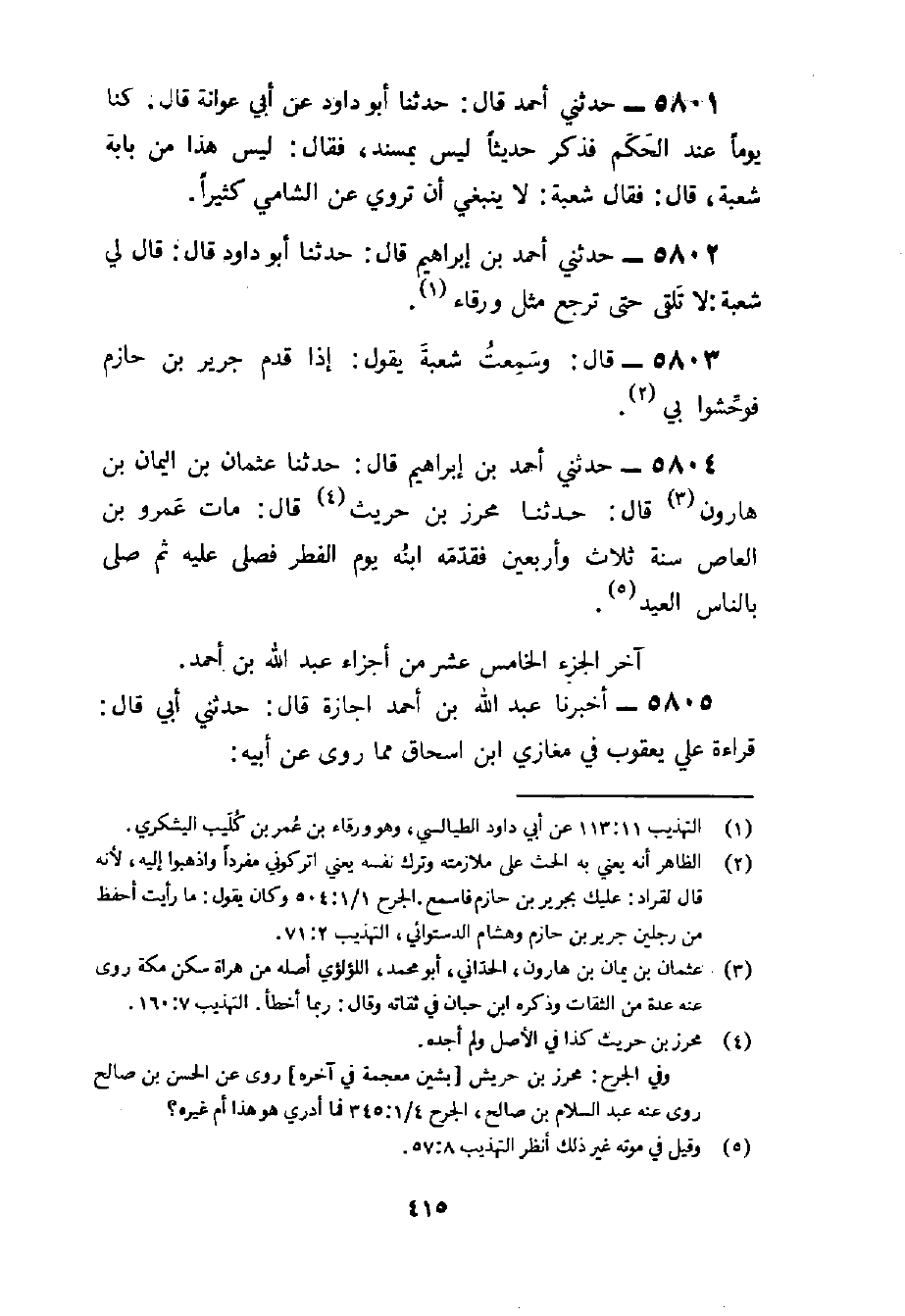 آخر الْجُزْء الْخَامِس عشر من أَجزَاء عبد الله بن أَحْمد