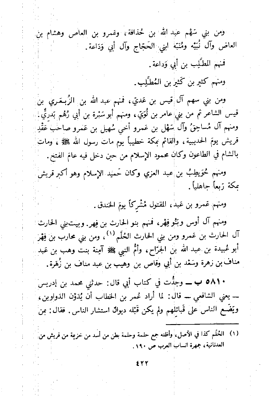 5810 - ب وَجَدْتُ فِي كِتَابِ أَبِي قَالَ حَدَّثَنِي مُحَمَّدُ بْنُ إِدْرِيسَ يَعْنِي الشَّافِعِيَّ قَالَ لَمَّا أَرَادَ عُمَرُ بْنُ الْخَطَّابِ أَنْ يُدَوِّنَ الدَّوَاوِينَ وَيَضَعُ النَّاسَ عَلَى قَبَائِلِهِمْ وَلَمْ يكن قبله ديوَان اسْتَشَارَ النَّاسَ فَقَالَ بِمَنْ