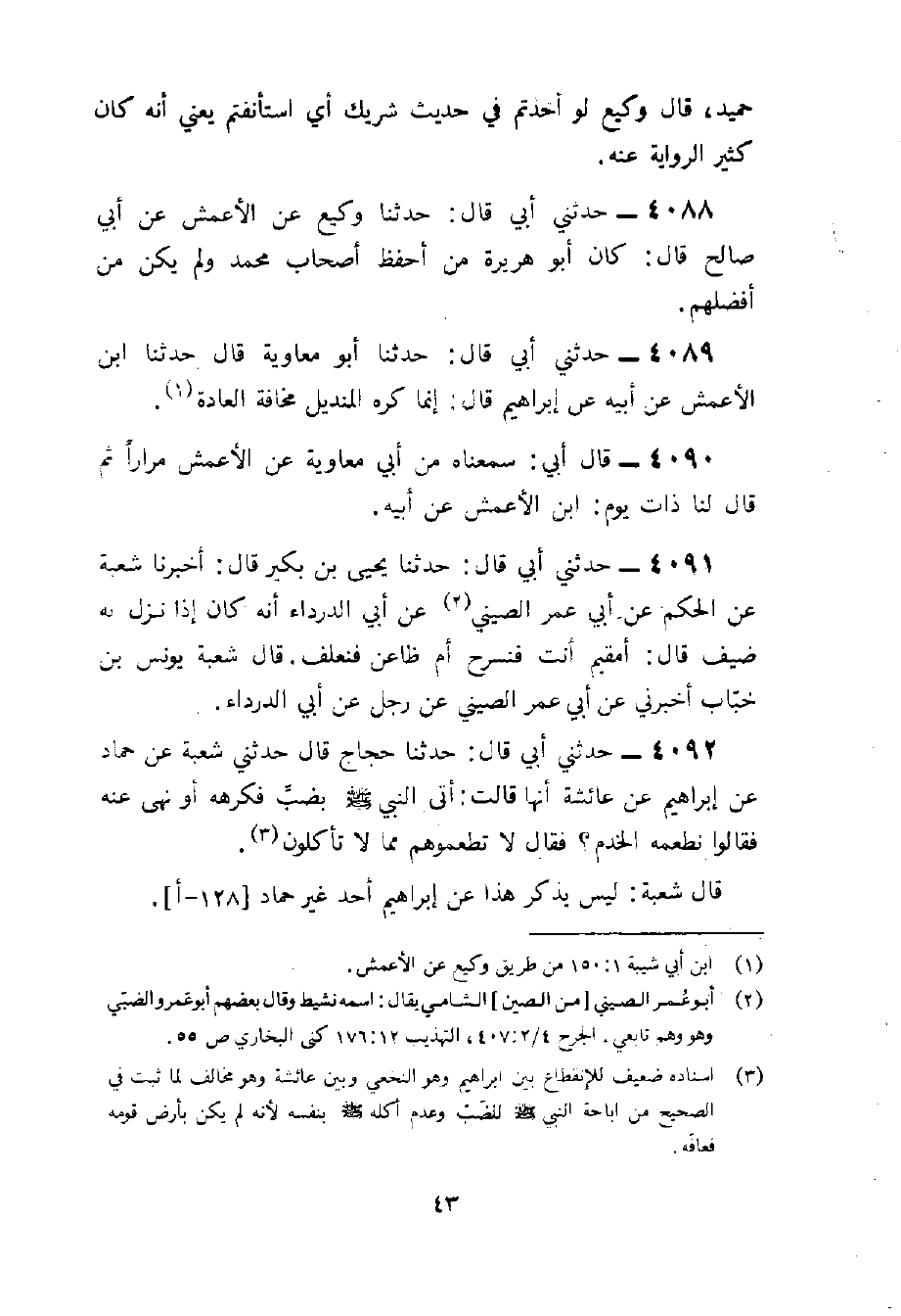 4090 - قَالَ أبي سمعناه من أبي مُعَاوِيَة عَن الْأَعْمَش مرَارًا ثمَّ قَالَ لنا ذَات يَوْم بن الْأَعْمَش عَن أَبِيه