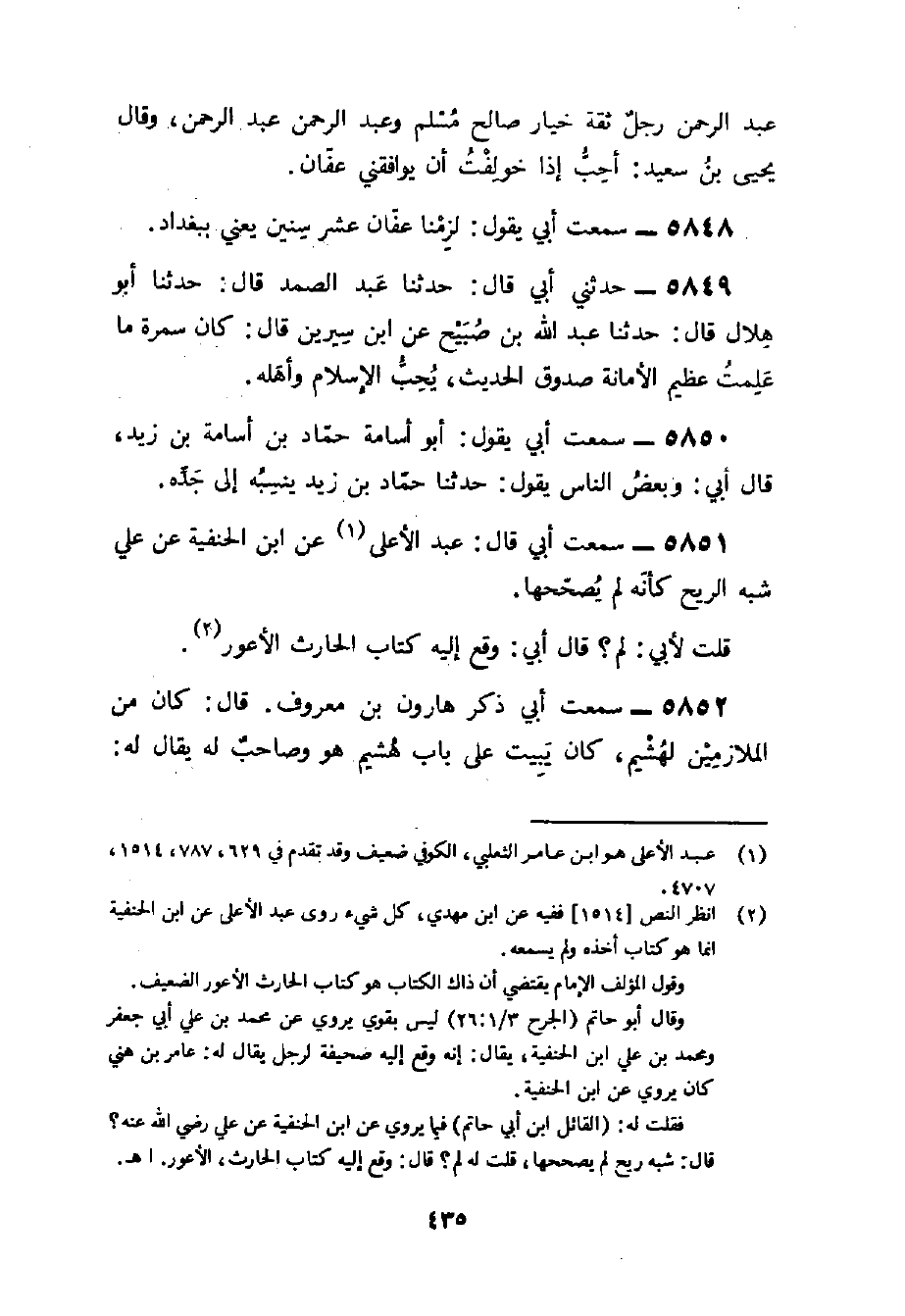 5850 - سَمِعت أبي يَقُول أَبُو أُسَامَة حَمَّاد بْن أُسَامَة بن زيد قَالَ أبي وَبَعض النَّاس يَقُول حَدثنَا حَمَّاد بن زيد ينْسبهُ إِلَى جده