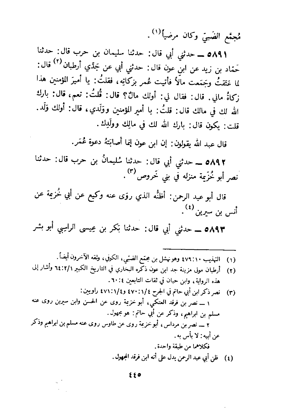 5891 - حَدثنِي أبي قَالَ حَدثنَا سُلَيْمَان بن حَرْب قَالَ حَدثنَا حَمَّاد بن زيد عَن بن عَوْنٍ قَالَ حَدَّثَنِي أَبِي عَنْ جَدِّي أَرْطبَانَ قَالَ لَمَّا عَتَقْتُ وجمعت مَالا فَأتيت عمر بِزَكَاتِهِ فَقُلْتُ يَا أَمِيرَ الْمُؤْمِنِينَ هَذَا زَكَاة مَالِي قَالَ فَقَالَ لي أولك مَال قَالَ قُلْتُ نَعَمْ قَالَ بَارَكَ اللَّهُ لَكَ فِي مَالِكَ قَالَ قُلْتُ يَا أَمِيرَ الْمُؤْمِنِينَ وَوَلَدِي قَالَ أولك وَلَدٌ قُلْتُ يَكُونُ قَالَ بَارَكَ اللَّهُ لَكَ فِي مَالِكَ وَوَلَدِكَ قَالَ عبد الله يَقُولُونَ أَن بن عون إِنَّمَا أَصَابَته دَعَوْت عمر