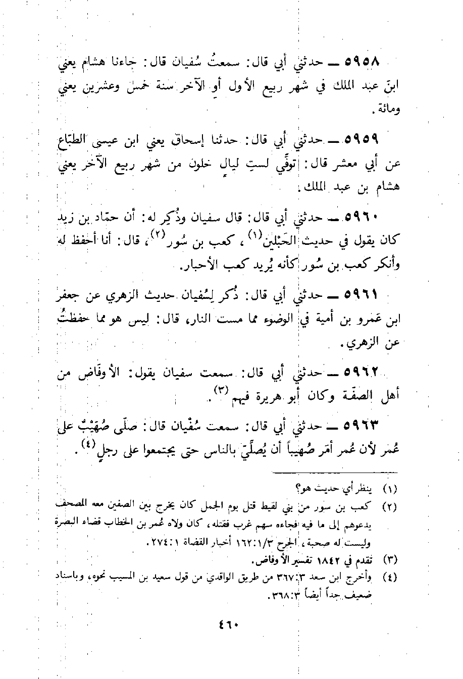 5960 - حَدثنِي أبي قَالَ قَالَ سُفْيَان وَذكر لَهُ أَن حَمَّاد بن زيد كَانَ يَقُول فِي حَدِيث الحبلين كَعْب بن سور قَالَ أَنا أحفظ لَهُ وَأنكر كَعْب بن سور كَأَنَّهُ يُرِيد كَعْب الْأَحْبَار