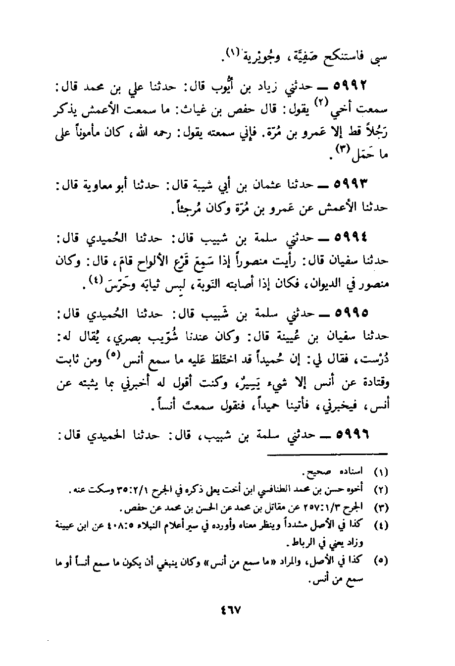 5995 - حَدثنِي سَلمَة بن شبيب قَالَ حَدثنَا الْحميدِي قَالَ حَدثنَا سُفْيَان بن عُيَيْنَة قَالَ وَكَانَ عندنَا شويب بَصرِي يُقَال لَهُ درست فَقَالَ لي إِن حميدا قد اخْتَلَط عَلَيْهِ مَا سمع أنس وَمن ثَابت وَقَتَادَة عَن أنس إِلَّا شَيْء يسير وَكنت أَقُول لَهُ أَخْبرنِي بِمَا يُثبتهُ عَن أنس فيخبرني فأتينا حميدا فَنَقُول سَمِعت أنسا