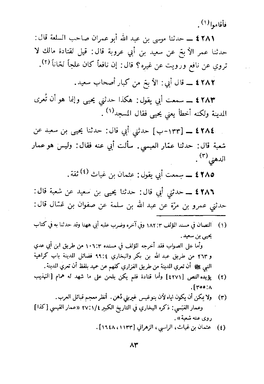 4283 - سَمِعت أَبِي يَقُول هَكَذَا حَدثنِي يَحْيَى وَإِنَّمَا هُوَ أَنْ تُعْرَى الْمَدِينَةُ وَلَكِنَّهُ أَخْطَأَ يَعْنِي يَحْيَى فَقَالَ الْمَسْجِد