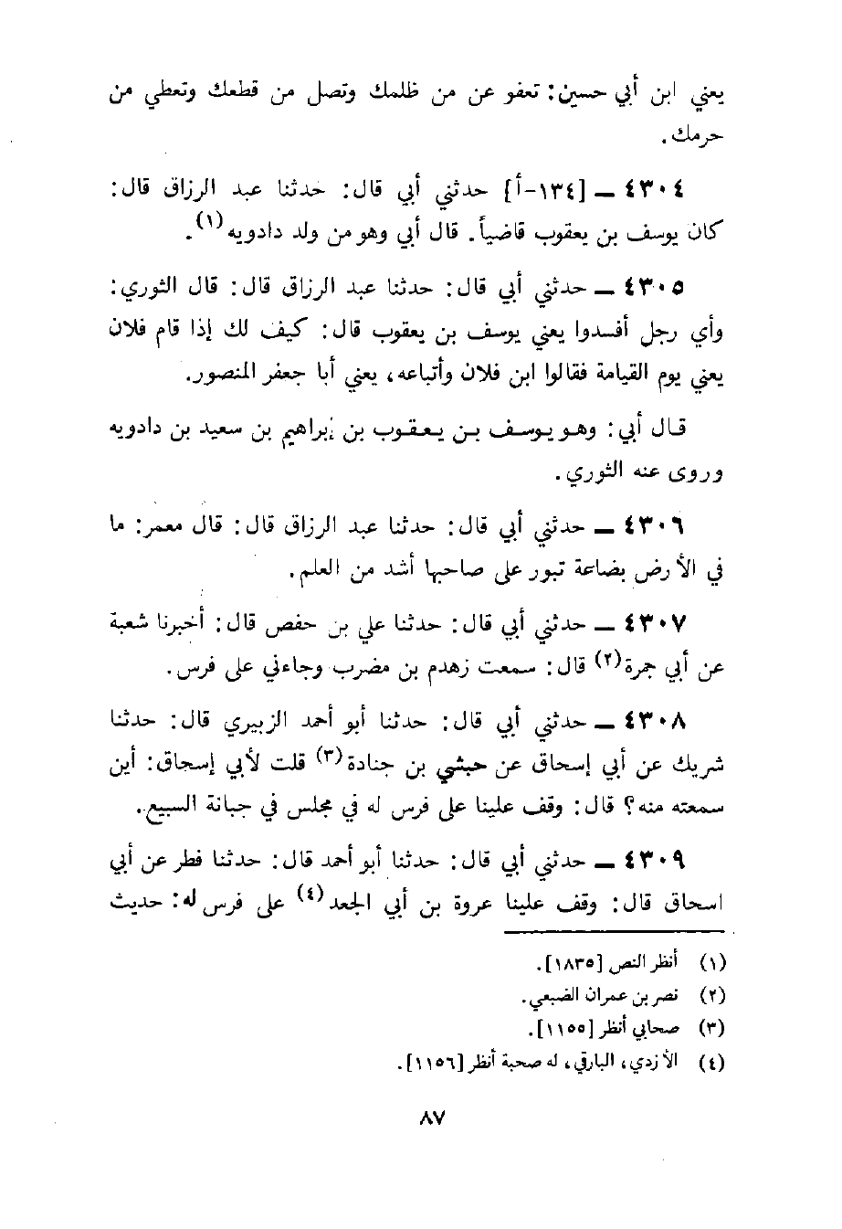 4304 - حَدثنِي أبي قَالَ حَدثنَا عبد الرَّزَّاق قَالَ كَانَ يُوسُف بن يَعْقُوب قَاضِيا قَالَ أبي وَهُوَ من ولد دادويه