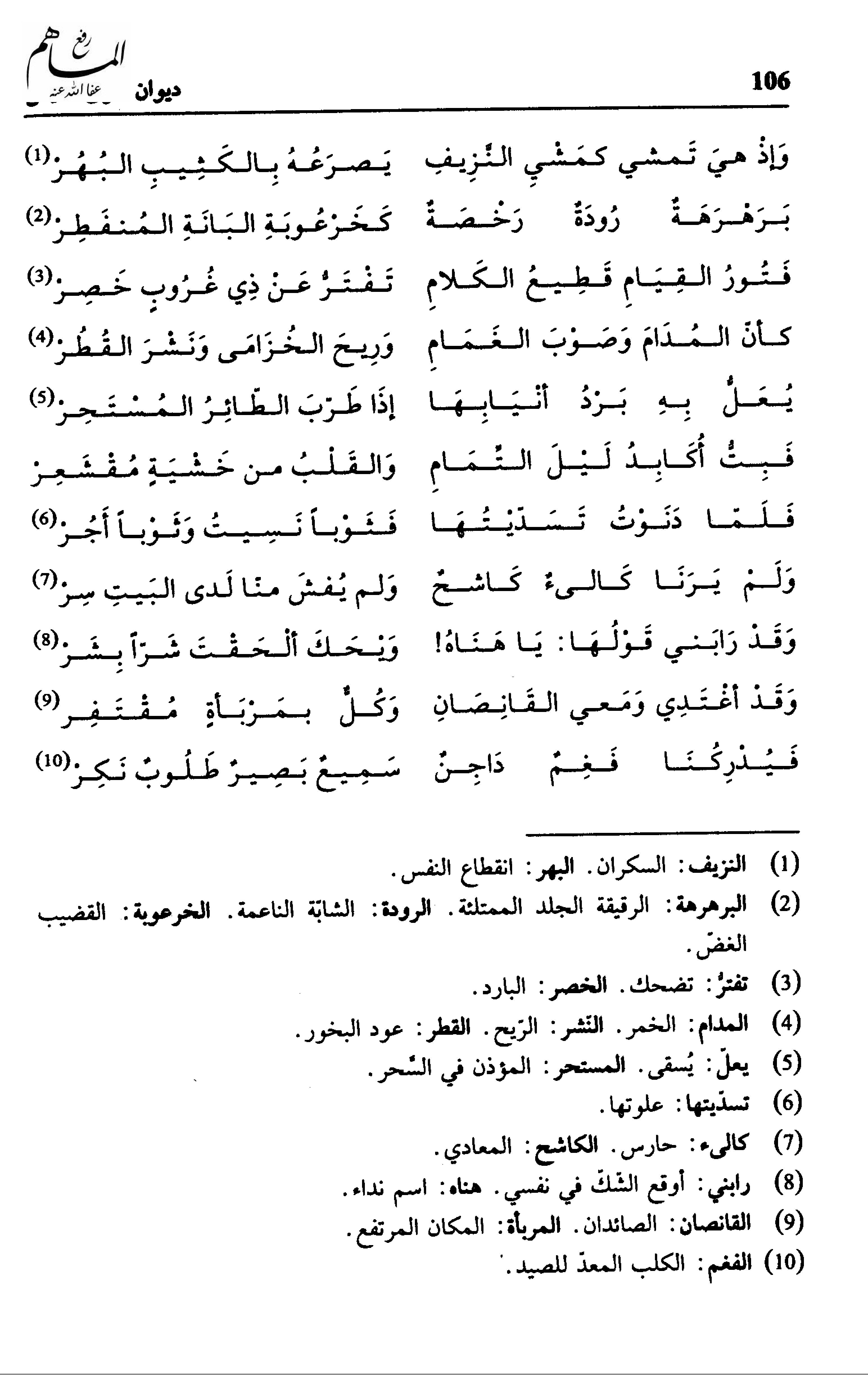 وَإذْ هيَ تَمشي كمَشْيِ النَّزِيفِ ... يَصرَعُهُ بِالكَثِيبِ البُهُرْ (¬1)