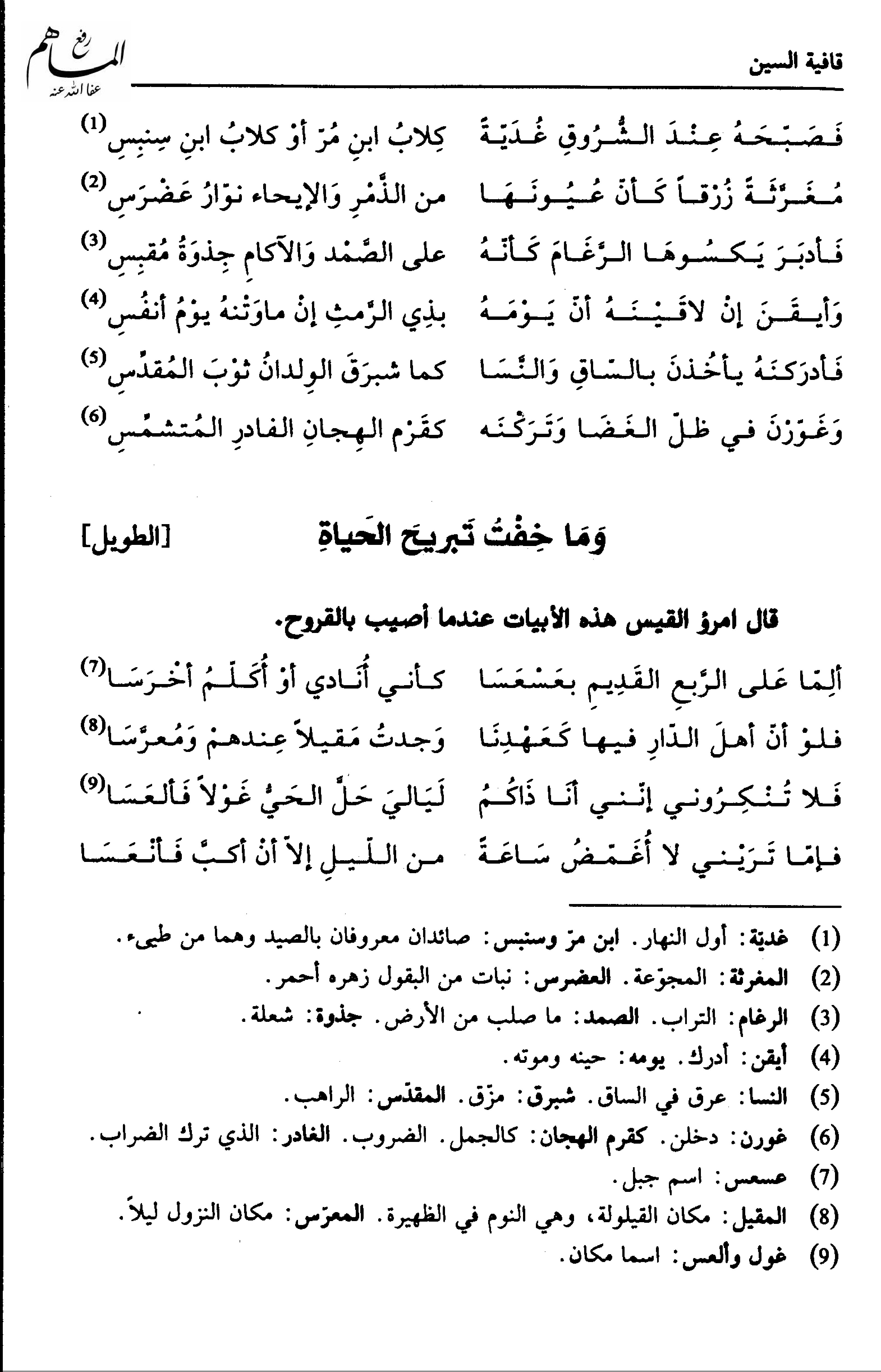 (¬1) غديّة: أول النهار. ابن مرّ وسنبس: صائدان معروفان بالصيد وهما من طيئ.