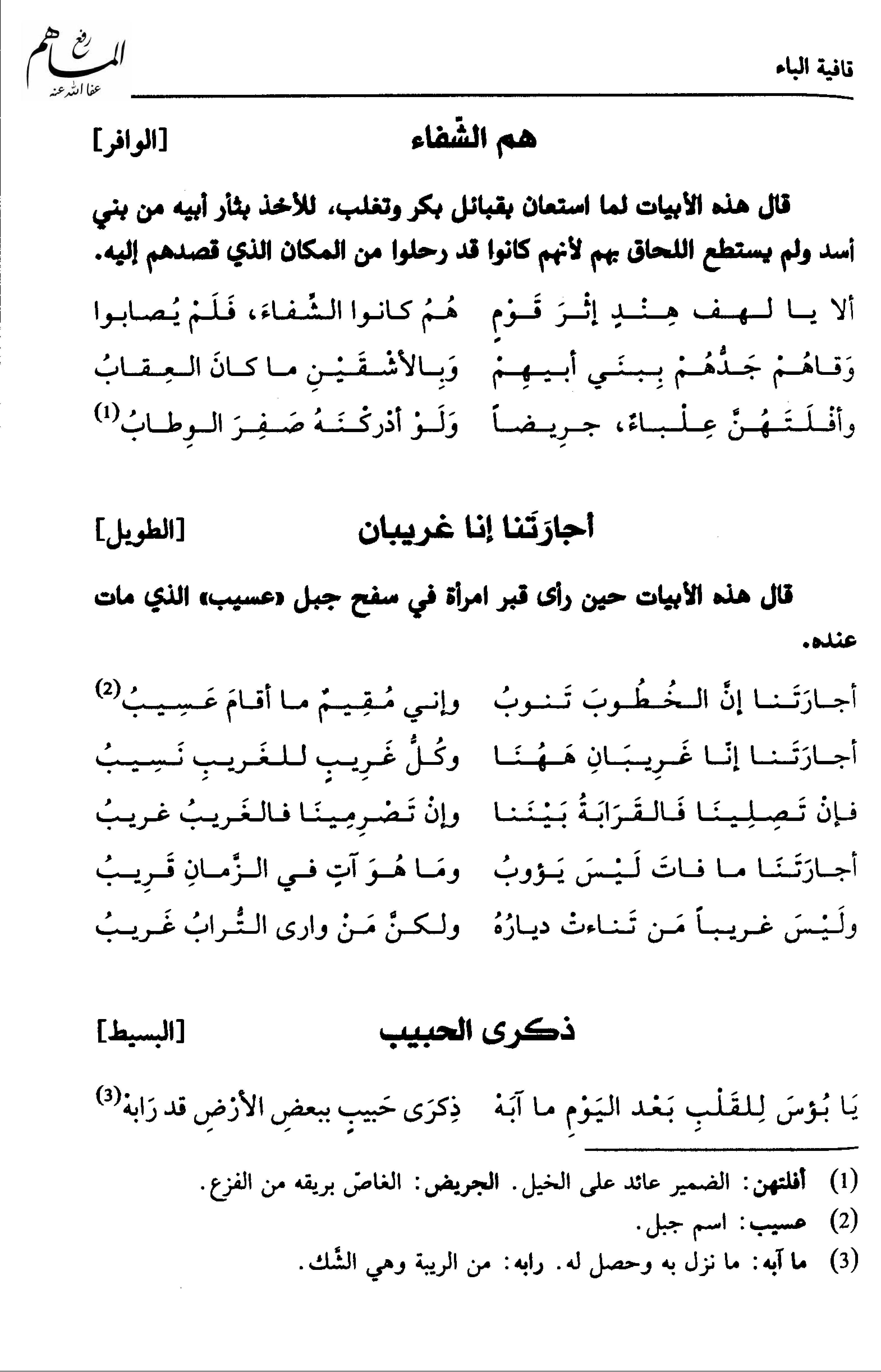 يَا بُؤسَ لِلقَلْبِ بَعْد اليَوْمِ ما آبَهْ ... ذِكرَى حَبيبٍ ببعضِ الأرْضِ قد رَابهْ (¬3)