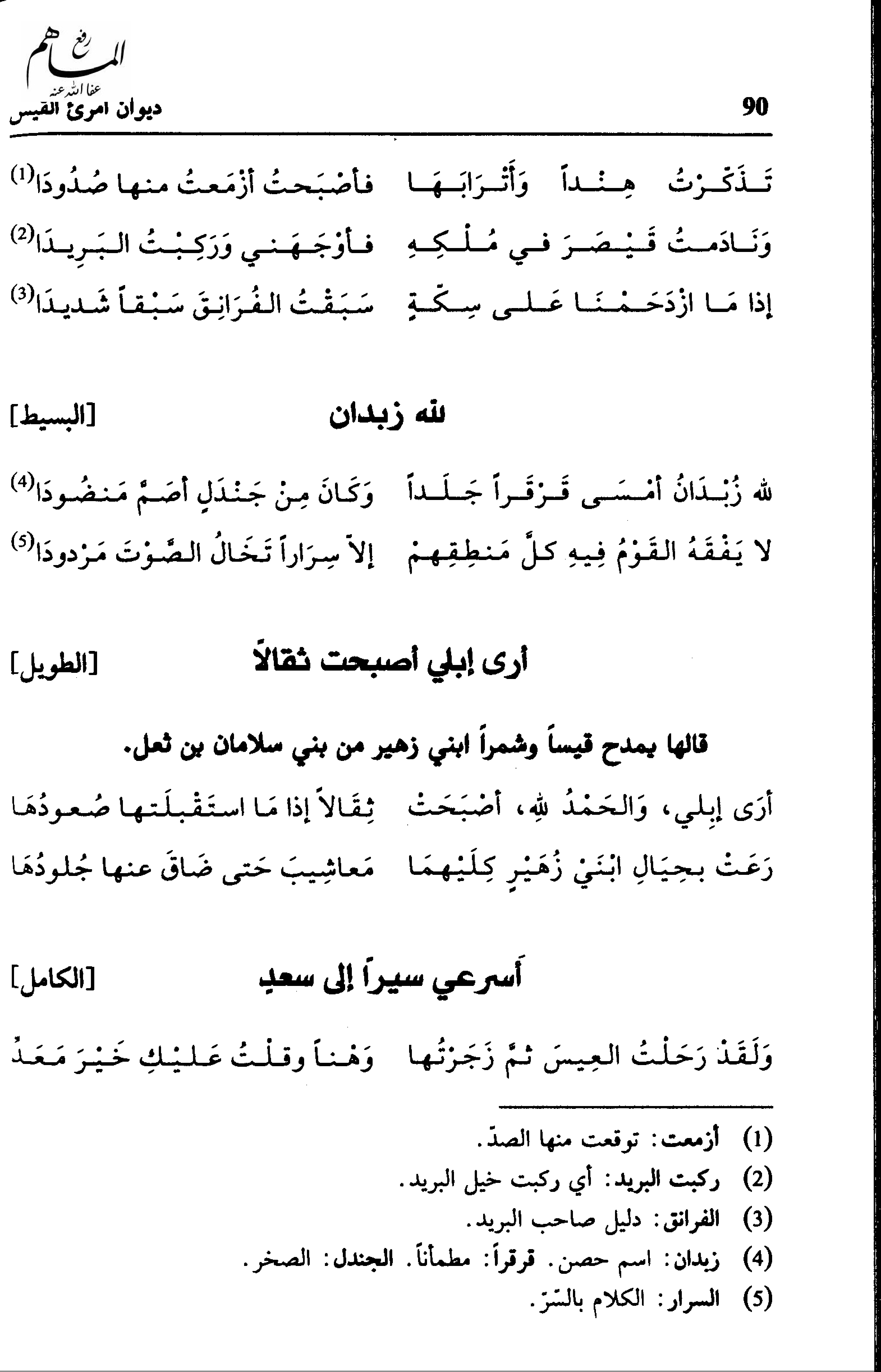 (¬4) زبدان: اسم حصن. قرقراً: مطمأناً. الجندل: الصخر.