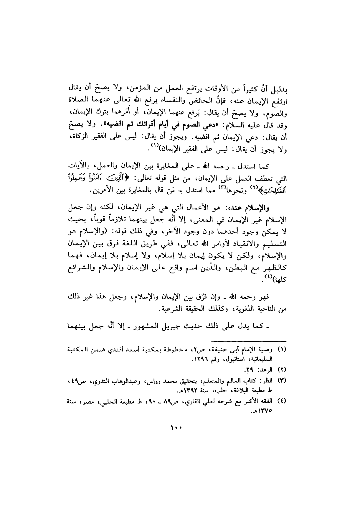 3 انظر: كتاب العالم والمتعلم، بتحقيق محمد رواس، وعبد الوهاب الندوي، ص49، ط مطبعة البلاغة، حلب، سنة 1392هـ.