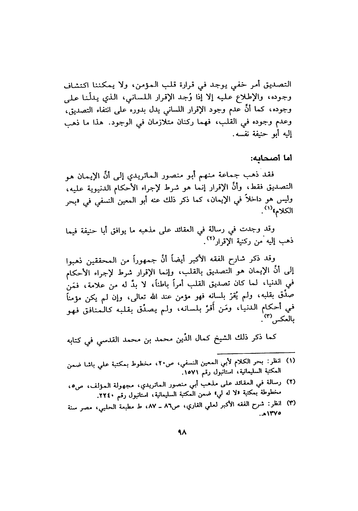 3 انظر: شرح الفقه الأكبر لعلي القاري، ص86-87، ط مطبعة الحلبي، مصر سنة 1375هـ.