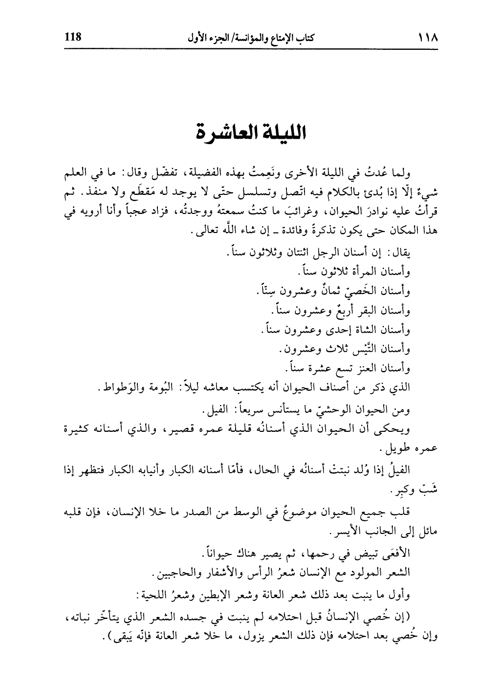 ولما عدت في الليلة الأخرى ونعمت بهذه الفضيلة، تفضّل وقال: ما في العلم شيء إلّا إذا بدئ بالكلام فيه اتّصل وتسلسل حتّى لا يوجد له مقطع ولا منفذ. ثم قرأت عليه نوادر الحيوان، وغرائب ما كنت سمعته ووجدته، فزاد عجبا وأنا أرويه في هذا المكان حتى يكون تذكرة وفائدة- إن شاء الله تعالى.