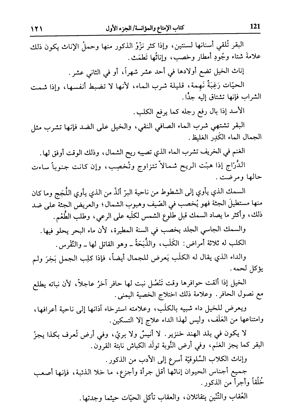 البقر تلقي أسنانها لسنتين، وإذا كثر نزو الذكور منها وحمل الإناث يكون ذلك علامة شتاء وجود أمطار وخصب، وإناثها تطمث.