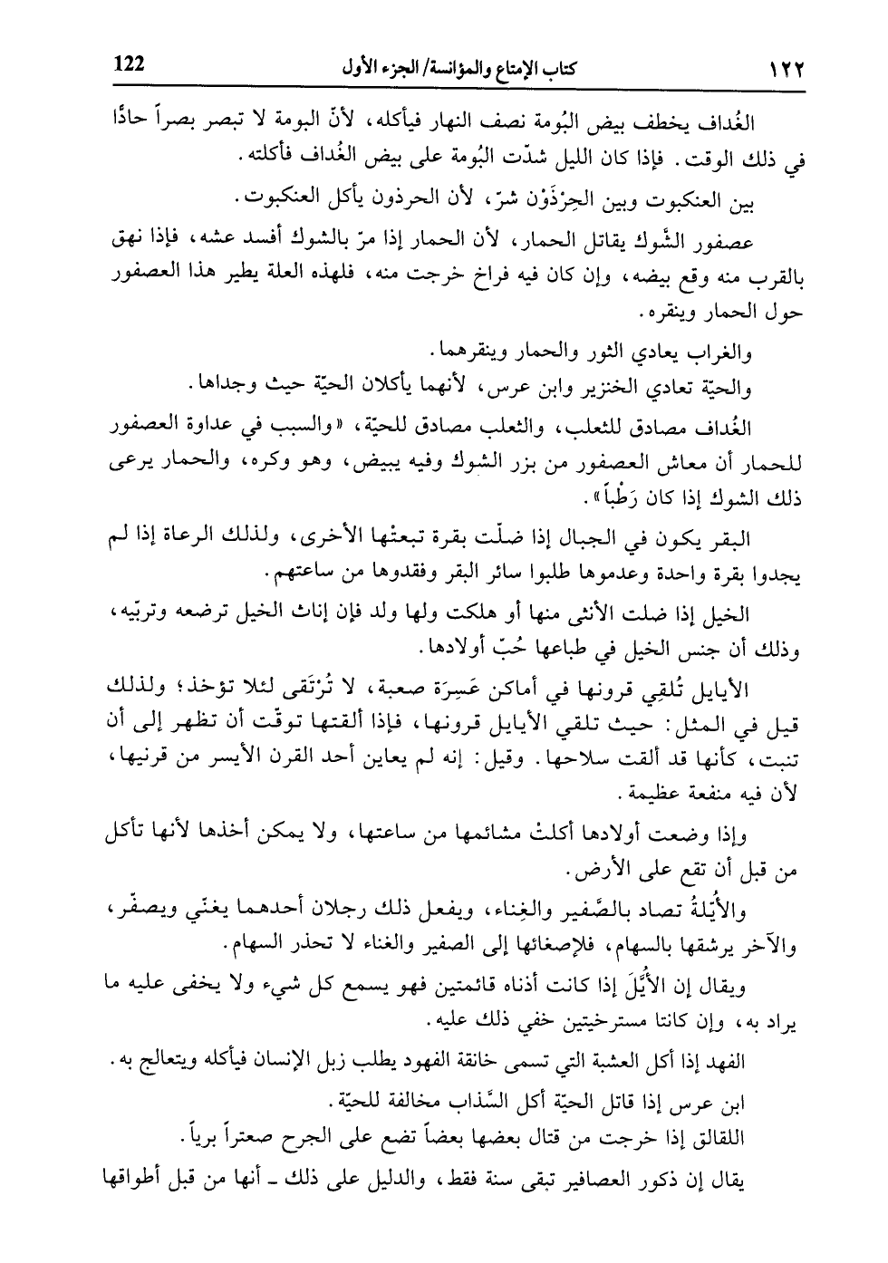 الغداف مصادق للثعلب، والثعلب مصادق للحيّة، «والسبب في عداوة العصفور للحمار أن معاش العصفور من بزر الشوك وفيه يبيض، وهو وكره، والحمار يرعى ذلك الشوك إذا كان رطبا» .