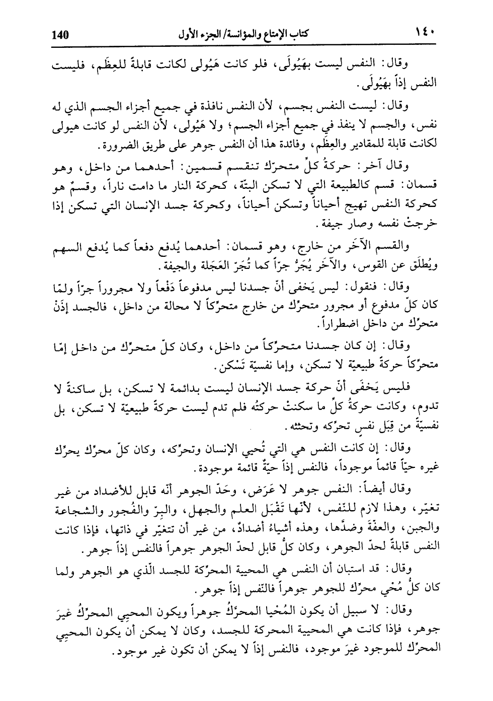 فليس يخفى أنّ حركة جسد الإنسان ليست بدائمة لا تسكن، بل ساكنة لا تدوم، وكانت حركة كلّ ما سكنت حركته فلم تدم ليست حركة طبيعيّة لا تسكن، بل نفسيّة من قبل نفس تحرّكه وتحثثه.
