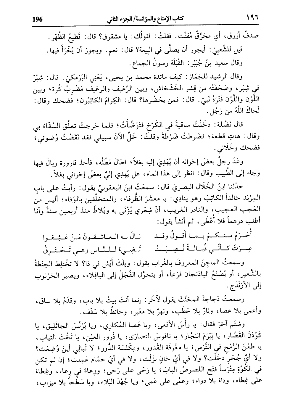 وسمعت الماجن المعروف بالغراب يقول: ويلك أيش في ذا؟ لا تختلط الحنطة بالشّعير، أو يصنع الباذنجان قرعا، أو يتحوّل الفجل إلى الباقلاء، ويصير الخرنوب إلى الأرندج.
