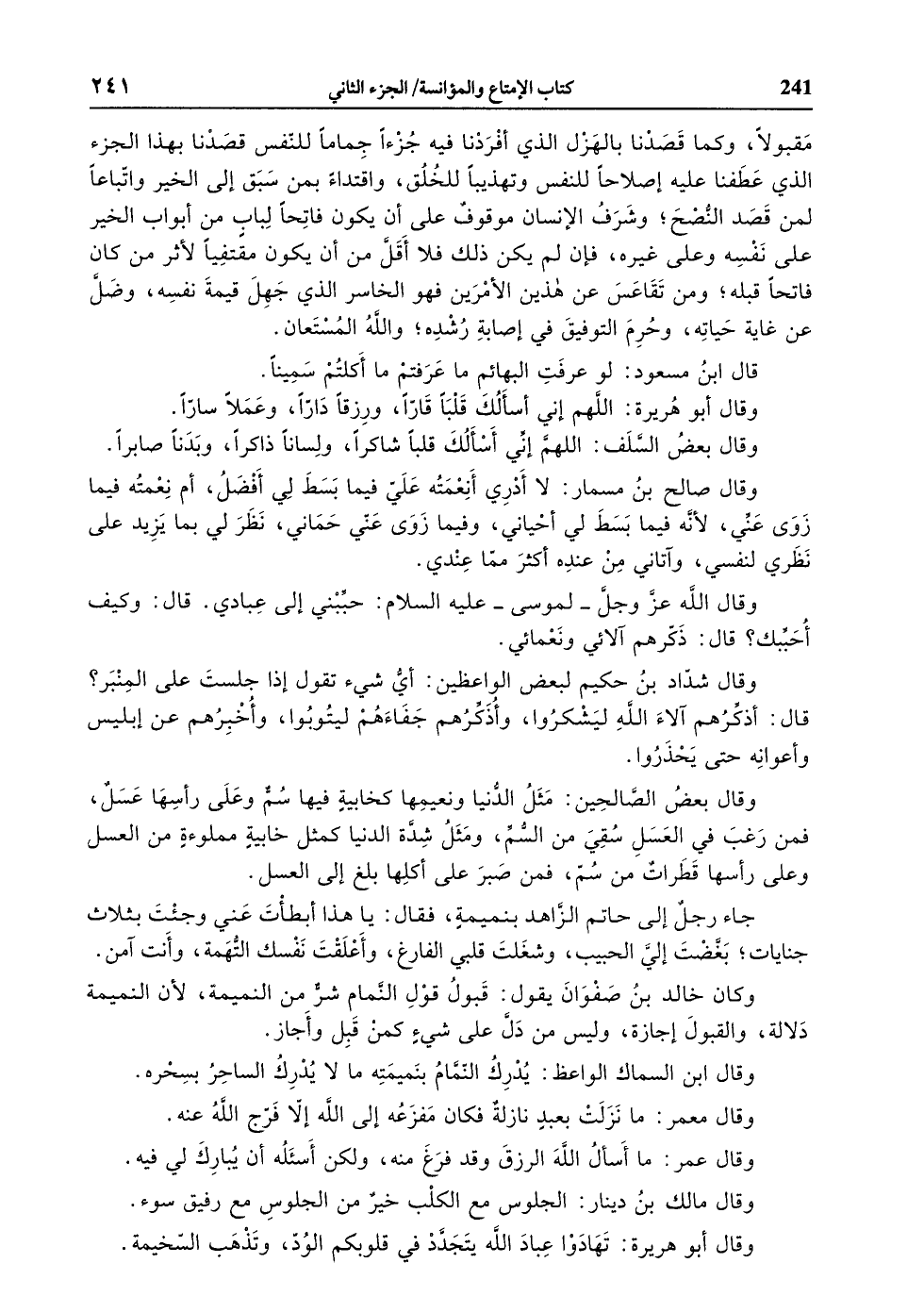 مقبولا، وكما قصدنا بالهزل الذي أفردنا فيه جزءا جماما للنّفس قصدنا بهذا الجزء الذي عطفنا عليه إصلاحا للنفس وتهذيبا للخلق، واقتداء بمن سبق إلى الخير واتّباعا لمن قصد النّصح، وشرف الإنسان موقوف على أن يكون فاتحا لباب من أبواب الخير على نفسه وعلى غيره، فإن لم يكن ذلك فلا أقلّ من أن يكون مقتفيا لأثر من كان فاتحا قبله، ومن تقاعس عن هذين الأمرين فهو الخاسر الذي جهل قيمة نفسه، وضلّ عن غاية حياته، وحرم التوفيق في إصابة رشده، والله المستعان.