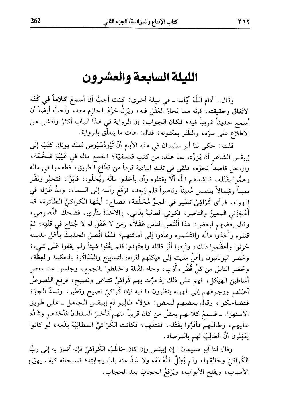وقال لنا أبو سليمان: إن إيبقس وإن كان خاطب الكراكيّ فإنّه أشار به إلى ربّ الكراكيّ وخالقها، ولم يطلّ الله دمه ولا سدّ عنه باب إجابته، فسبحانه كيف يهيّئ الأسباب، ويفتح الأبواب، ويرفع الحجاب بعد الحجاب.