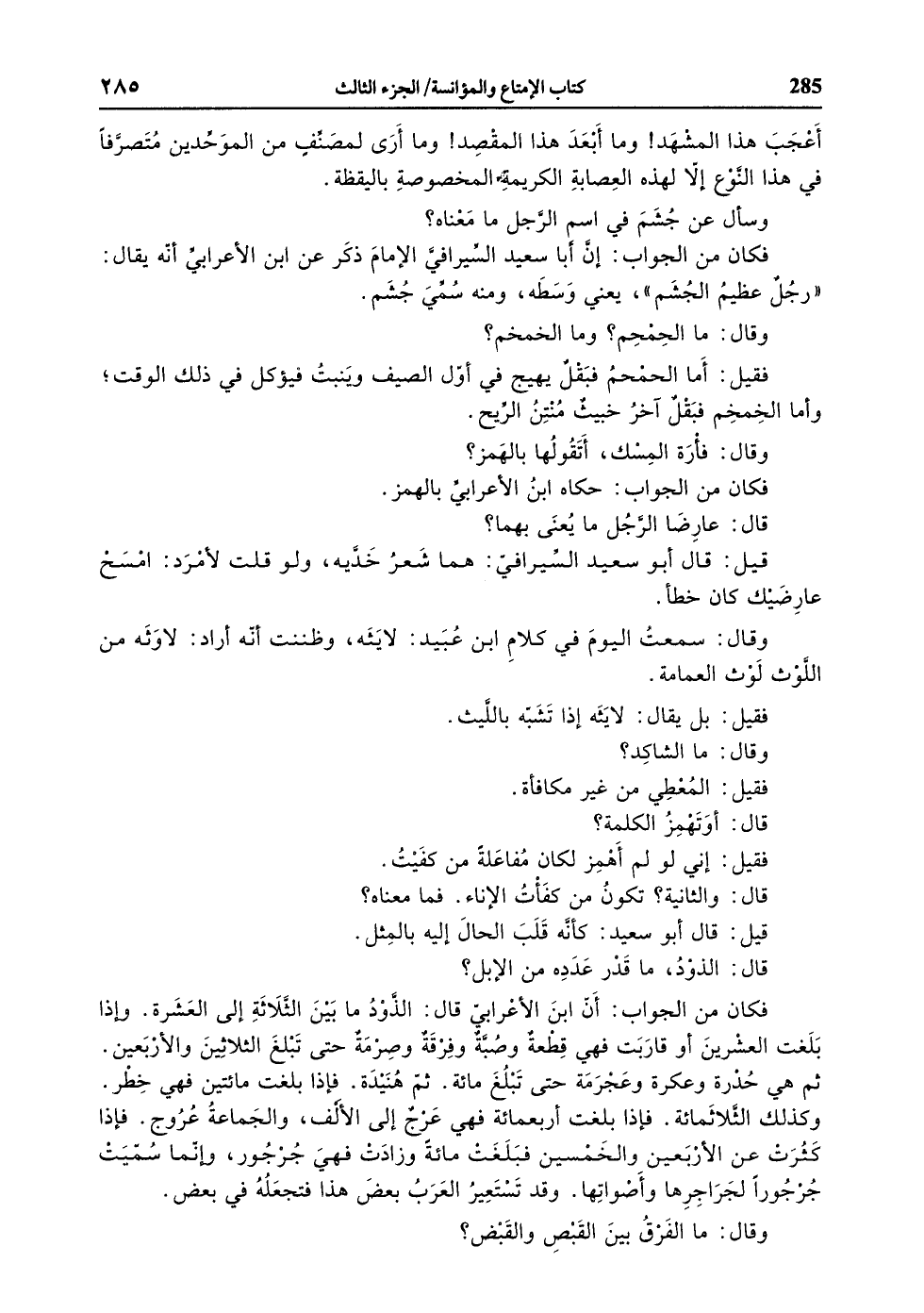 فكان من الجواب: إنّ أبا سعيد السّيرافيّ الإمام ذكر عن ابن الأعرابيّ أنّه يقال: