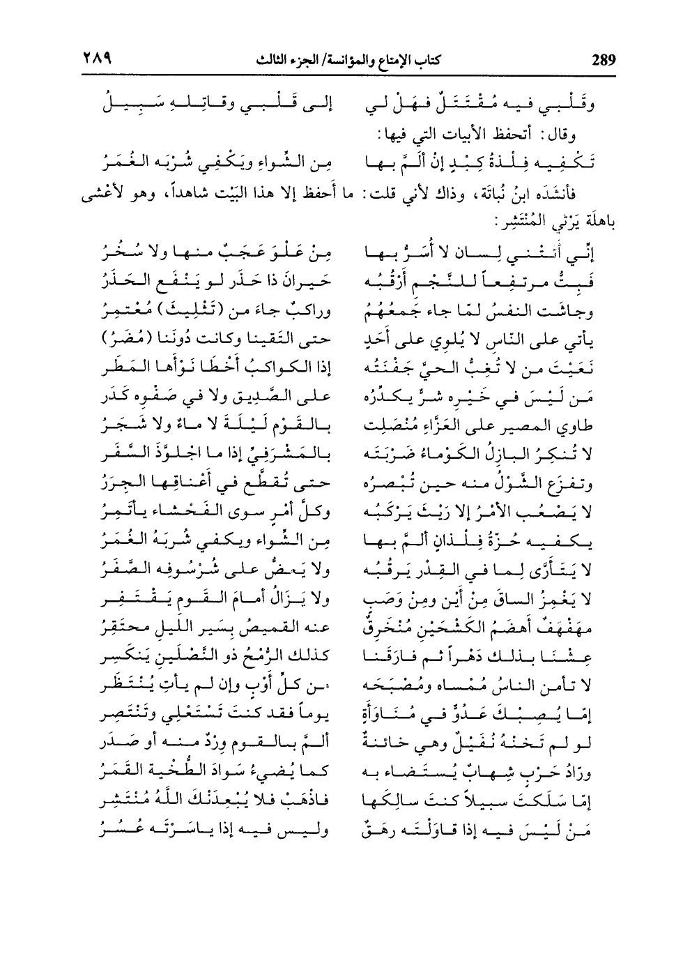 فأنشده ابن نباتة، وذاك لأني قلت: ما أحفظ إلا هذا البيت شاهدا، وهو لأعشى باهلة يرثي المنتشر: