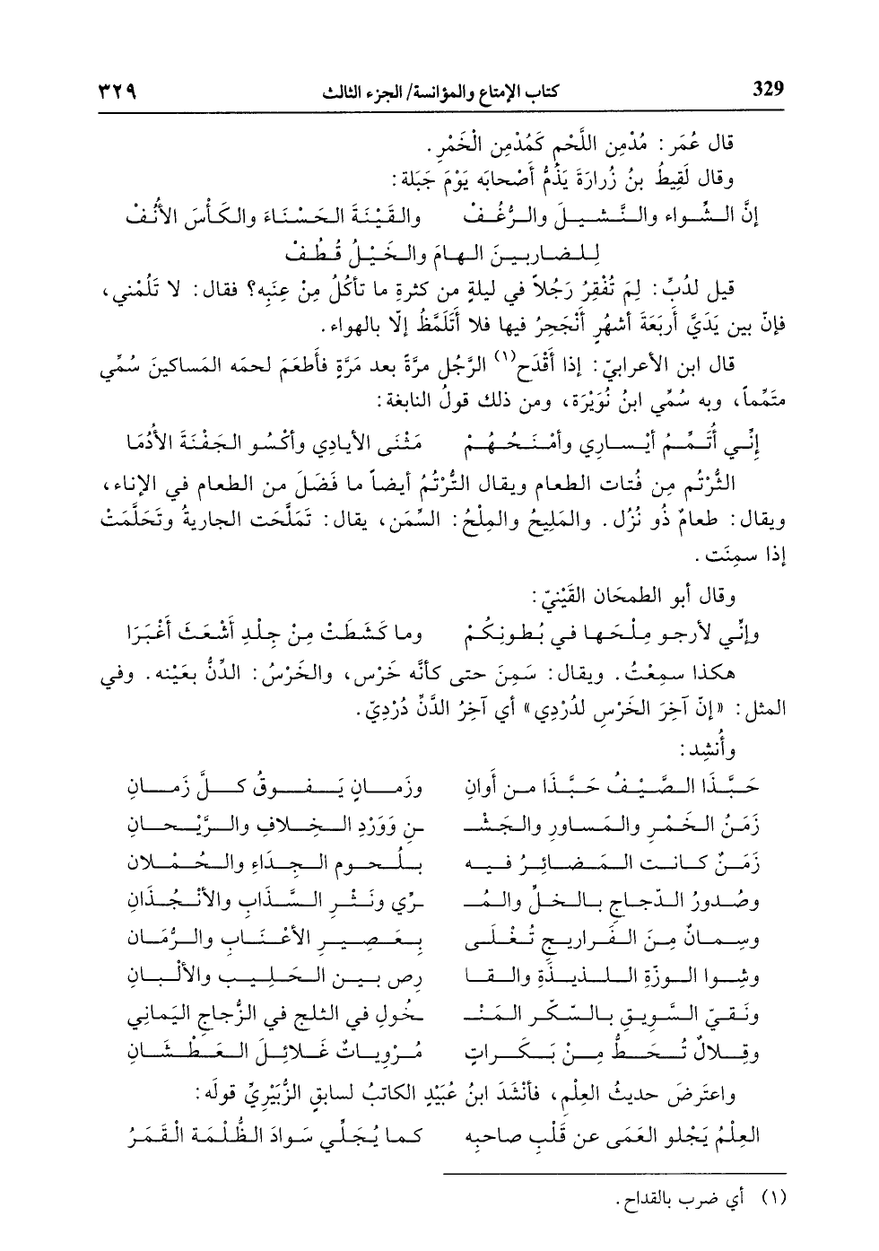 واعترض حديث العلم، فأنشد ابن عبيد الكاتب لسابق الزّبيريّ قوله: