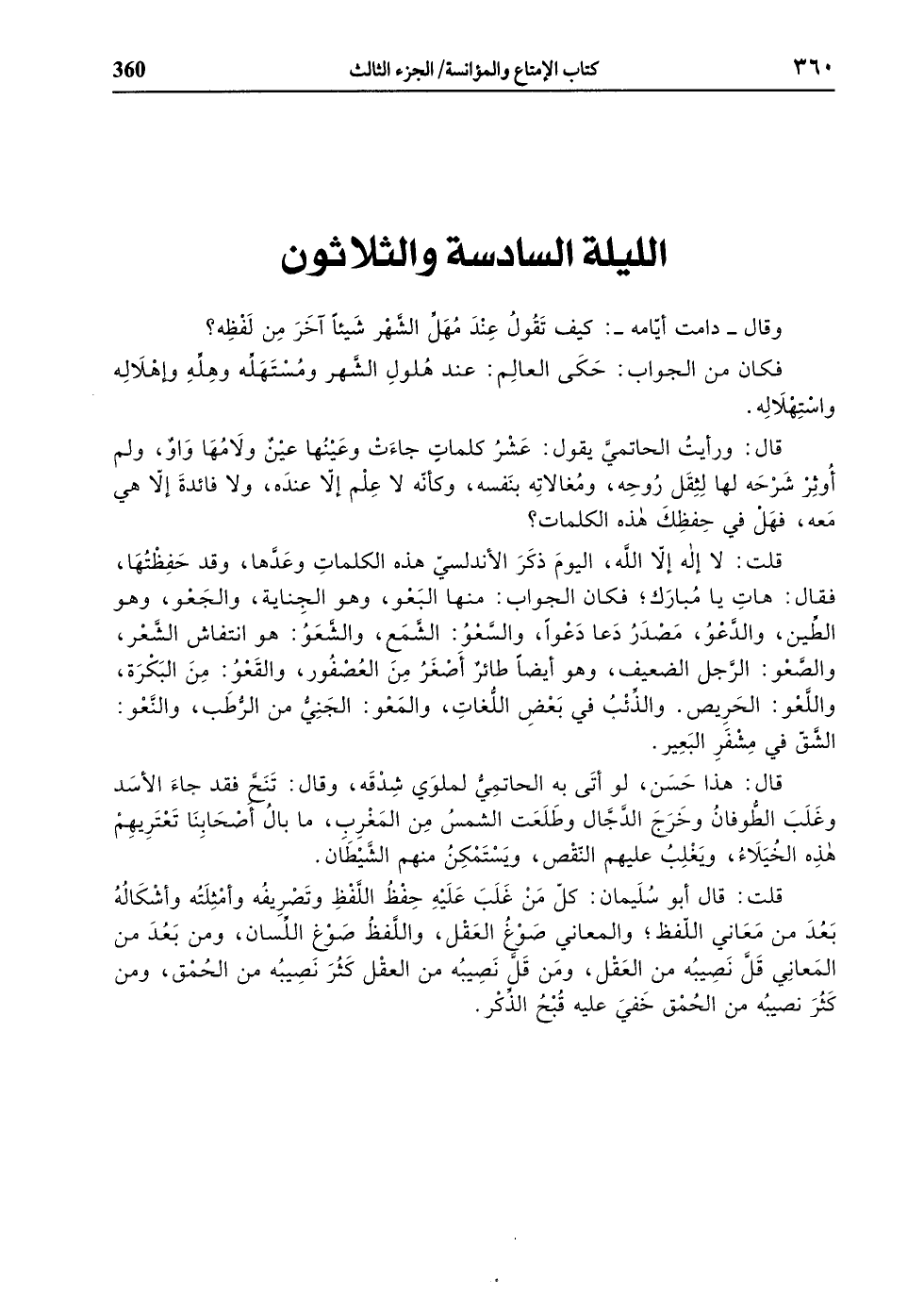 قال: ورأيت الحاتميّ يقول: عشر كلمات جاءت وعينها عين ولامها واو، ولم أوثر شرحه لها لثقل روحه، ومغالاته بنفسه، وكأنّه لا علم إلّا عنده، ولا فائدة إلّا هي معه، فهل في حفظك هذه الكلمات؟