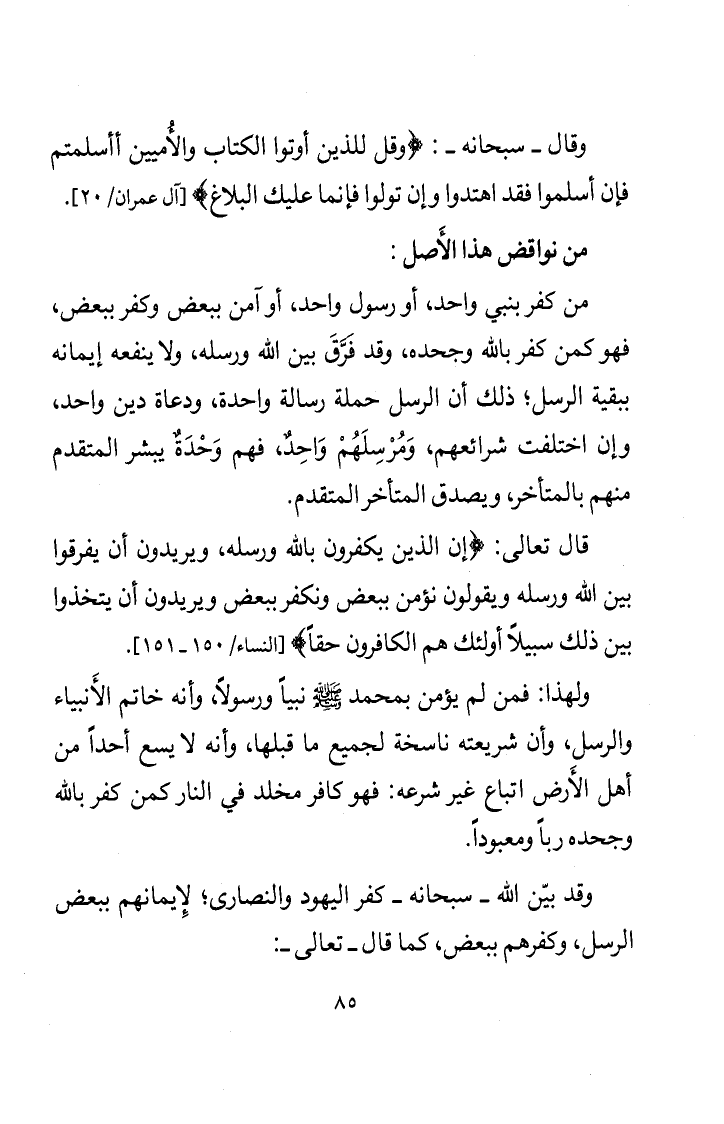 قال تعالى: {إِنَّ الَّذِينَ يَكْفُرُونَ بِاللَّهِ وَرُسُلِهِ وَيُرِيدُونَ أَنْ يُفَرِّقُوا بَيْنَ اللَّهِ وَرُسُلِهِ وَيَقُولُونَ نُؤْمِنُ بِبَعْضٍ وَنَكْفُرُ بِبَعْضٍ وَيُرِيدُونَ أَنْ يَتَّخِذُوا بَيْنَ ذَلِكَ سَبِيلًا} {أُولَئِكَ هُمُ الْكَافِرُونَ حَقًّا} [النساء / 150 - 151] .
