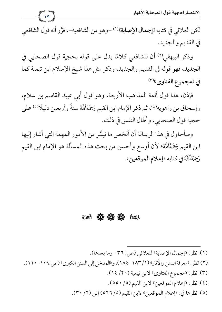 لكن العلائي في كتابه «إجمال الإصابة» (¬١) ـ وهو من الشافعية ـ قرَّر أنه قول الشافعي في القديم والجديد.