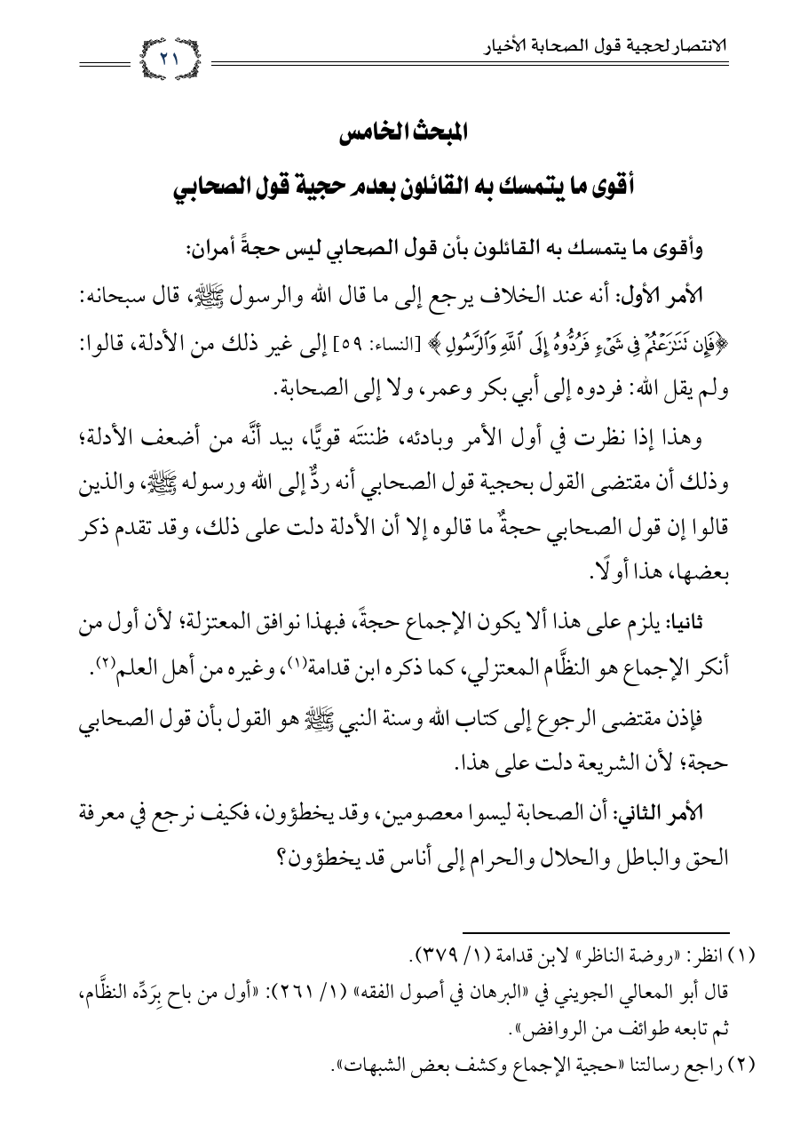 أقوى ما يتمسك به القائلون بعدم حجية قول الصحابي