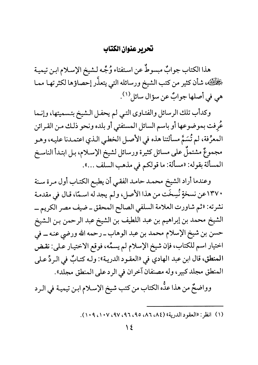 (¬١) انظر: «العقود الدرية» (٨٤, ٨٦, ٩٥, ٩٦, ٩٧, ١٠٧, ١٠٩).