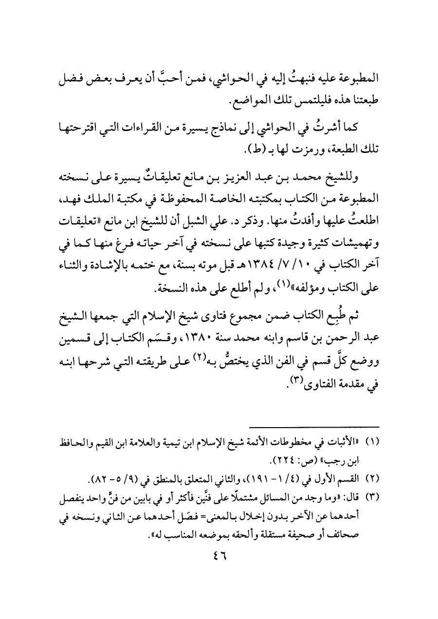 (¬١) «الأثبات في مخطوطات الأئمة شيخ الإسلام ابن تيمية والعلامة ابن القيم والحافظ ابن رجب» (ص: ٢٢٤).
