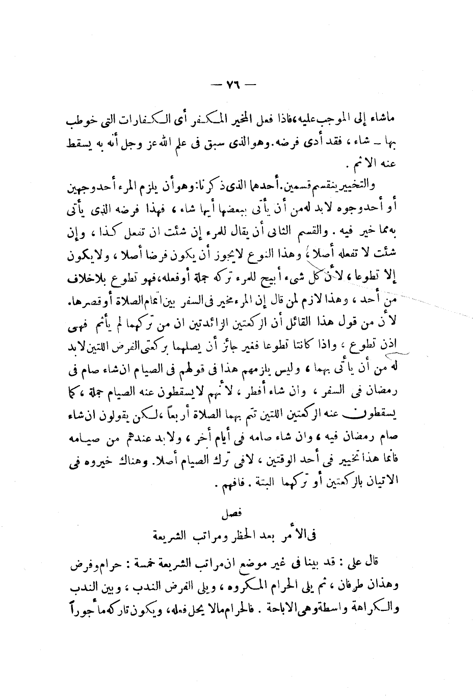 فصل في الأمر بعد الحظر ومراتب الشريعة