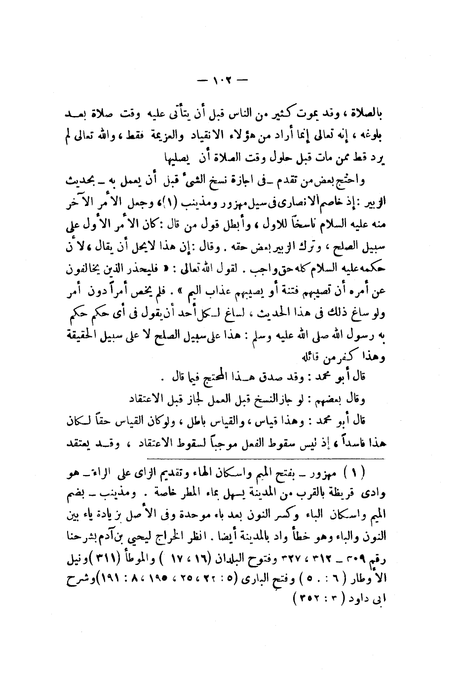 لقول الله تعالى {لا تجعلوا دعآء لرسول بينكم كدعآء بعضكم بعضا قد يعلم لله لذين يتسللون منكم لواذا فليحذر لذين يخالفون عن أمره أن تصيبهم فتنة أو يصيبهم عذاب أليم} فلم يخص أمرا دون أمر ولو ساغ ذلك في هذا الحديث لساغ لكل أحد أن يقول في أي حكم حكم به رسول الله صلى الله عليه وسلم هذا على سبيل الصلح لا على سبيل الحقيق وهذا كفر من قائله قال أبو محمد وقد صدق هذا المحتج فيما قال قال بعضهم لو جاز النسخ قبل العمل لجاز قبل الاعتقاد قال أبو محمد وهذا قياس والقياس باطل ولو كان القياس حقا لكان هذا فاسدا إذ ليس سقوط العقل موجبا لسقوط الاعتقاد وقد يعتقد