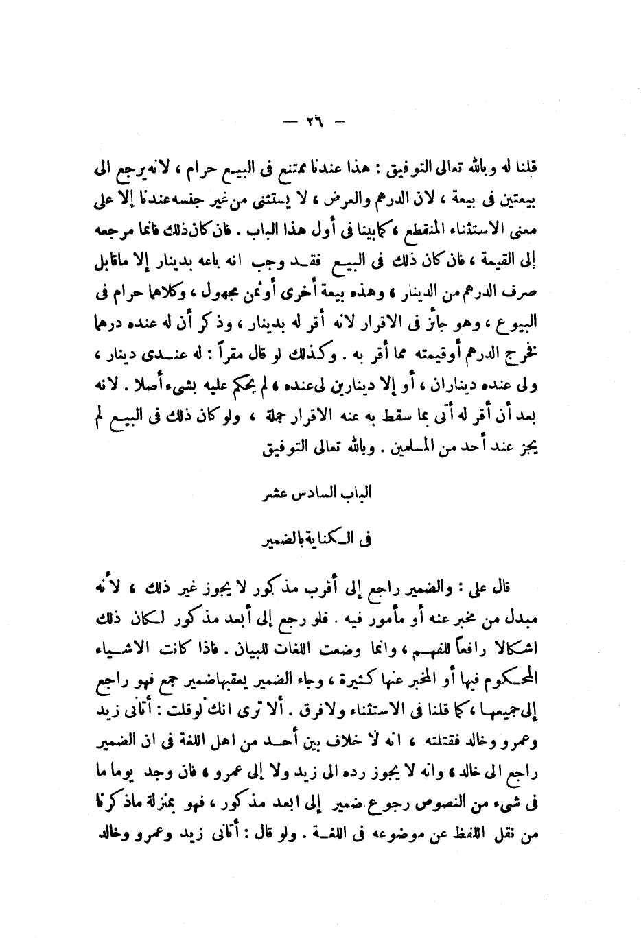 قال علي والضمير راجع إلى أقرب مذكور لا يجوز غير ذلك لأنه مبدل من مخبر عنه أو مأمور فيه فلو رجع إلى أقرب مذكور لكان ذلك إشكالا رافعا للفهم وإنما وضعت اللغات للبيان فإذا كانت الأشياء المحكوم فيها أو المخبر عنها كثيرة وجاء الضمير يعقبها ضمير جمع فهو راجع إلى جميعها كما قلنا في الاستثناء ولا فرق ألا ترى أنك لو قلت أتاني زيد وعمرو وخالد فقتلته أنه لا خلاف بين أحد من أهل اللغة في أن الضمير راجع إلى خالد وأنه لا يجوز رده إلى زيد أو إلى عمرو فإن وجد يوما ما في شيء من النصوص رجوع ضمير إلى أبعد مذكور فهو بمنزلة ما ذكرنا من نقل اللفظ عن موضوعه في اللغة ولو قال أتاني زيد وعمرو وخالد