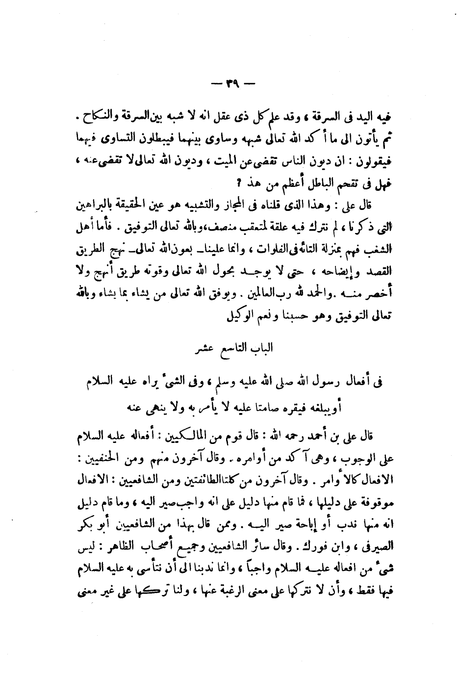 في اليد في السرقة وقد علم كل ذي عقل أنه لا شبه بين السرقة والنكاح ثم يأتون إلى ما أكد الله تعالى شبهه وساوى بينهما فيبطلون التساوي فيهما فيقولون إن ديون الناس تقضى عن الميت وديون الله تعالى لا تقضى عنه فهل في تقحم الباطل أعظم من هذا قال علي وهذا الذي قلنا في المجاوز والتشبيه هو عين الحقيقة بالبراهين التي ذكرنا لم نترك فيه علقة لمتعقب منصف وبالله تعالى التوفيق فأما أهل الشغب فهم بمنزلة التائه في الفلوات وإنما علينا بعون الله تعالى نهج الطريق القصد وإيضاحه حتى لا يوجد بحول الله تعالى وقوته طريق أنهج ولا أخصر منه والحمد لله رب العالمين ويوفق الله تعالى من يشاء بما يشاء وبالله تعالى التوفيق وهو حسبنا ونعم الوكيل