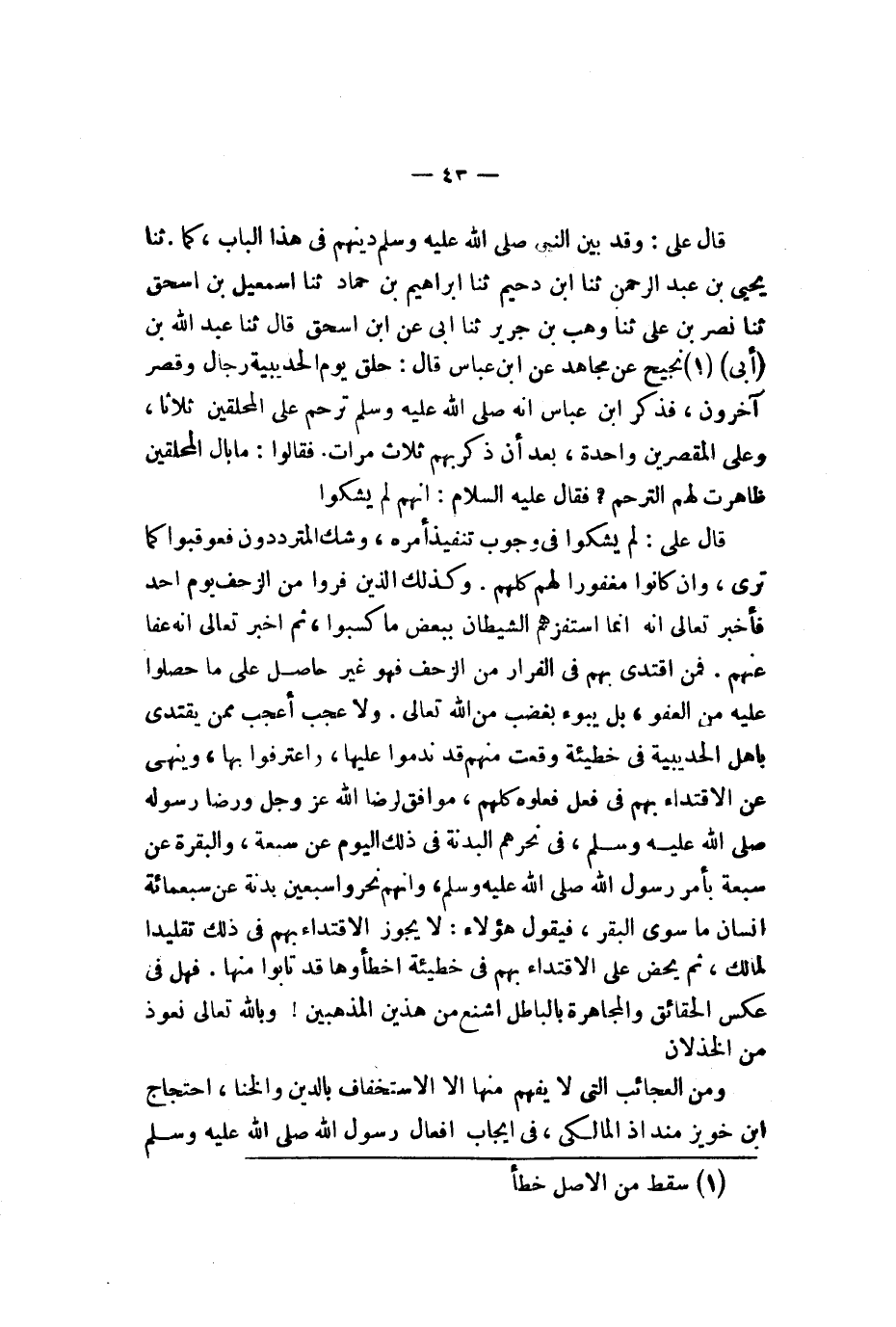 قال علي وقد بين النبي صلى الله عليه وسلم دينهم في هذا الباب كما ثنا يحيى بن عبد الرحمن ثنا ابن دحيم ثنا إبراهيم بن حماد ثنا إسماعيل بن إسحاق ثنا نصر بن علي ثنا وهب