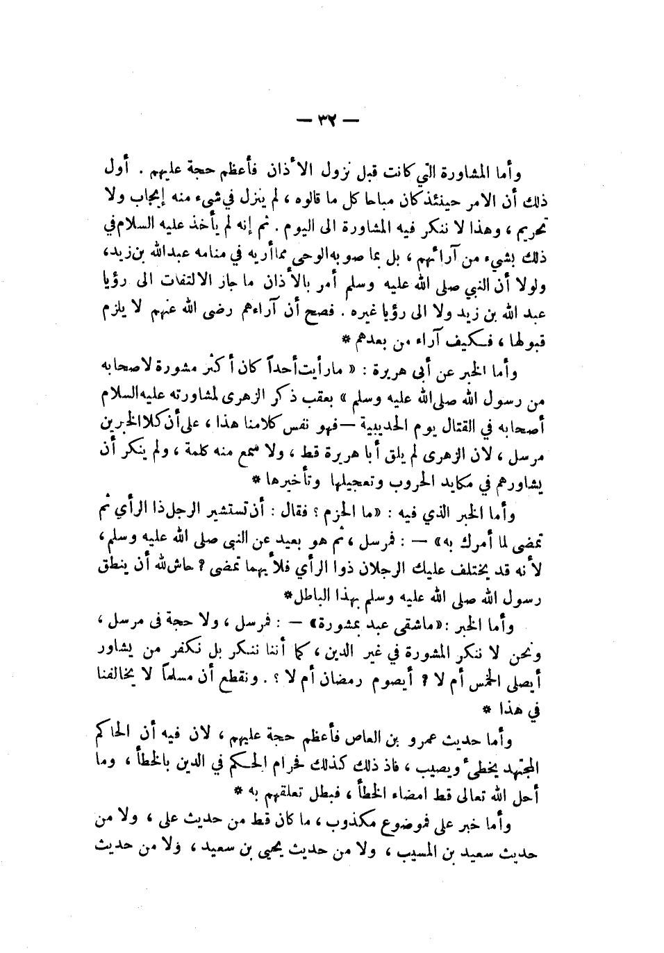 وسلم بهذا الباطل وأما الخبر ما شقي عبد بمشورة فمرسل ولا حجة في مرسل ونحن لا ننكر المشورة في غير الدين كما أننا ننكر بل نكفر من يشاور أيصلي الخمس أم لا أيصوم رمضان أم لا ونقطع أن مسلما لا يخالفنا في هذا