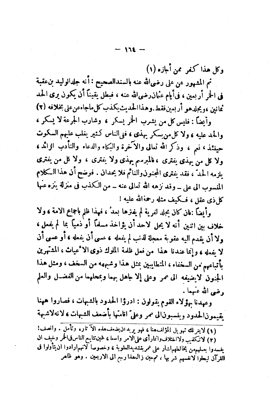 وكل هذا كفر ممن أجازه ثم المشهور عن علي رضي الله عنه بالسند الصحيح أنه جلد الوليد بن عقبة في الخمر أربعين في أيام عثمان رضي الله عنه فبطل يقينا أن يكون يرى الحد ثمانين ويجلد هو أربعين فقط وهذا الحديث يكذب كل ما عن علي بخلافه وأيضا فليس كل من يشرب الخمر يسكر وشارب الجرعة لا يسكر والحد عليه ولا كل من يسكر يهذي ففي الناس كثير يغلب عليهم السكون حينئذ نعم وذكر الله تعالى الآخرة والبكاء والدعاء والتأدب الزائد ولا كل من يهذي يفتري فالمبرسم يهذي ولا يفتري ولا كل من يفتري يلزمه الحد فقد يفتري المجنون والنائم فلا يحدان فوضح أن هذا الكلام المنسوب إلى علي وقد نزهه الله تعالى عنه من الكذب في منزله ينزه عنها كل ذي عقل فكيف مثله رحمة الله عليه وأيضا فإن كان يجلد لفرية لم يفترها بعد فهذا ظلم بإجماع الأمة ولا خلاف بين اثنين أنه لا يحل لأحد أن يؤاخذ مسلما أو ذميا بما لم يفعل ولا أن يقدم إليه عقوبة معجلة لذنب لم يفعله عسى أن يفعله أو عسى ألا يفعله وإنما عندنا هذا من فعل ظلمة الملوك ذوي الأعياث المشتهرين