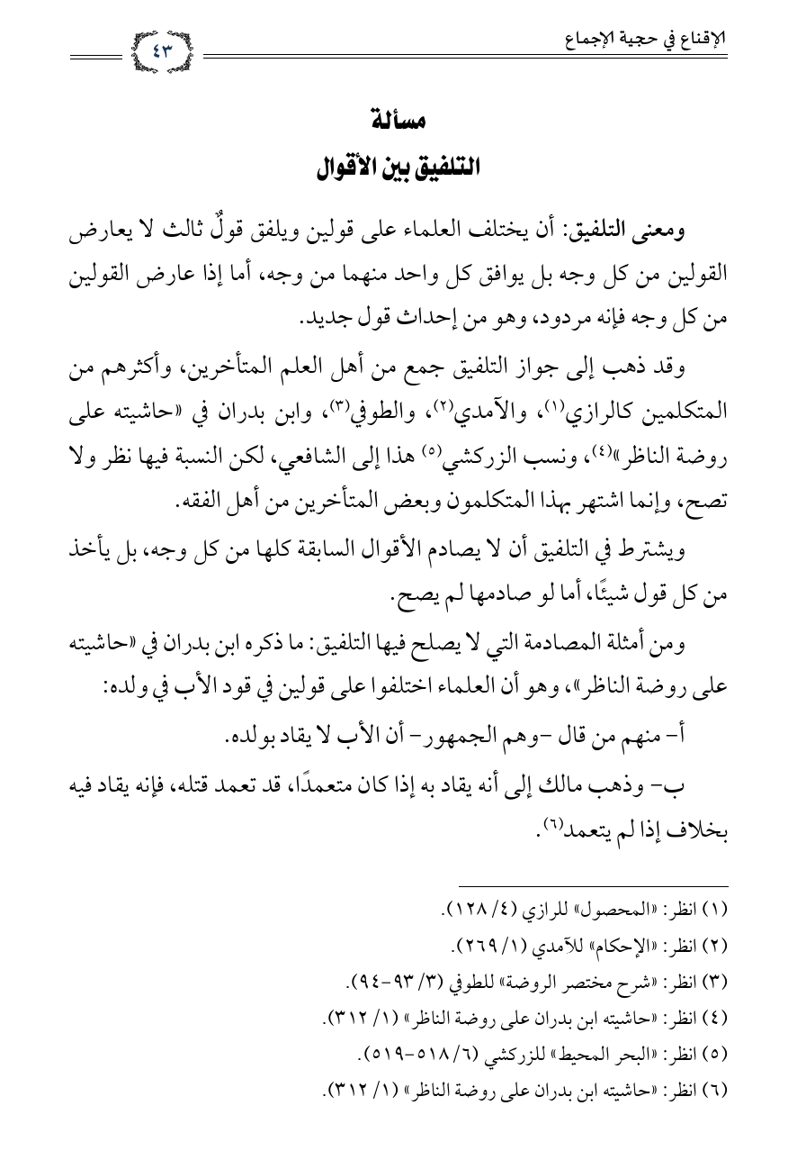 (¬٦) انظر: «حاشيته ابن بدران على روضة الناظر» (١/ ٣١٢).